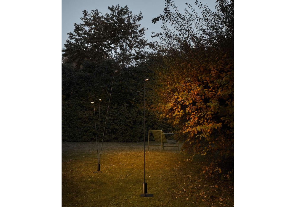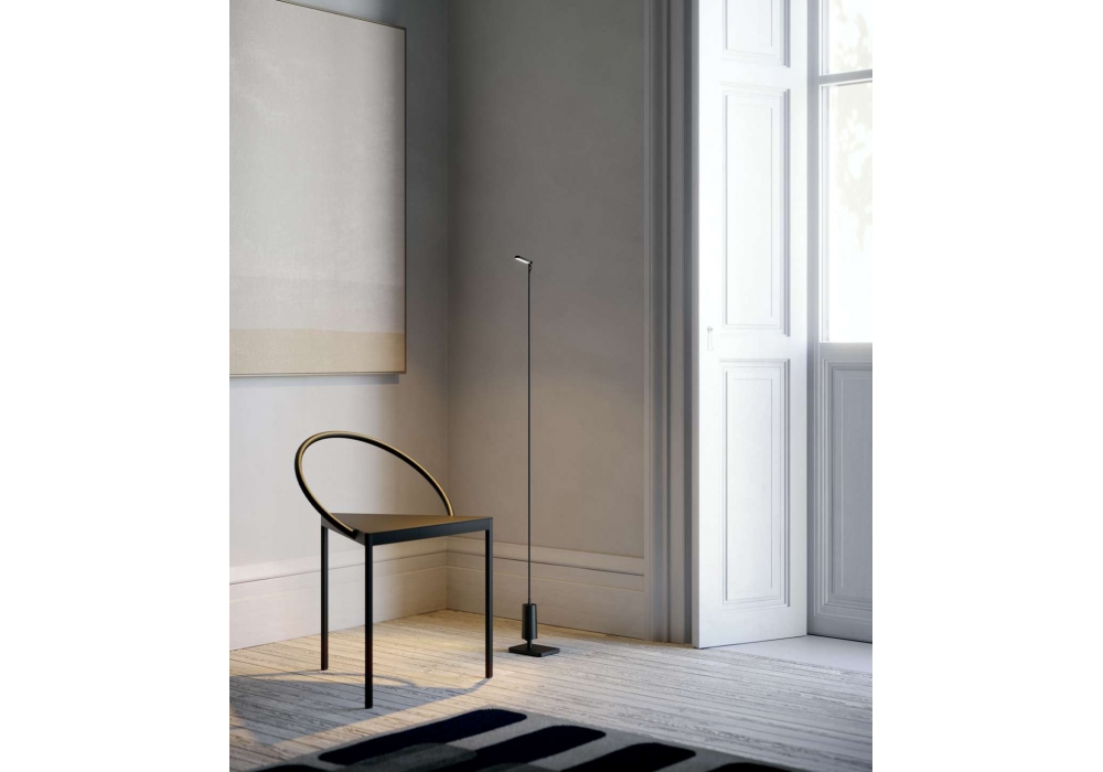 Flia von Alessandro Zambelli für Luceplan entworfen, ist eine Stehleuchte mit Stab aus mattschwarzer Kohlefaser und Aluminiumdiffusor. Es kann zwischen einem rechteckigen Sockel oder einem Pfahl gewählt werden. Verfügbar in verschiedenen Abmessungen.