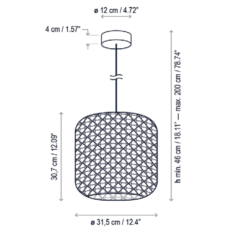 | Abmessungen | Ø 16,7 x H 16,5 cm Hmax 200 cm; Ø 21,6, x H 24,7 cm Hmax 200 cm; Ø 31,5, x H 30,7 cm Hmax 200 cm; Ø 31,5, x H 45,7 cm Hmax 200 cm. |