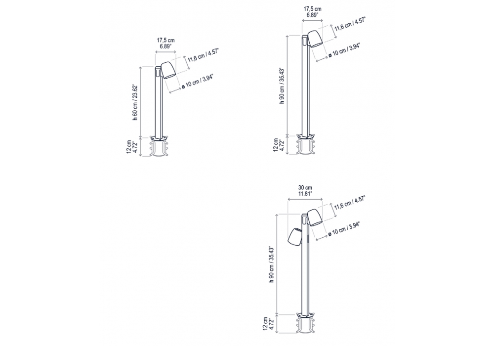 | Abmessungen | 10 x 17,5 x H 60 cm; 10 x 17,5 x H 90 cm; 10 x 30 x H 90 cm; |