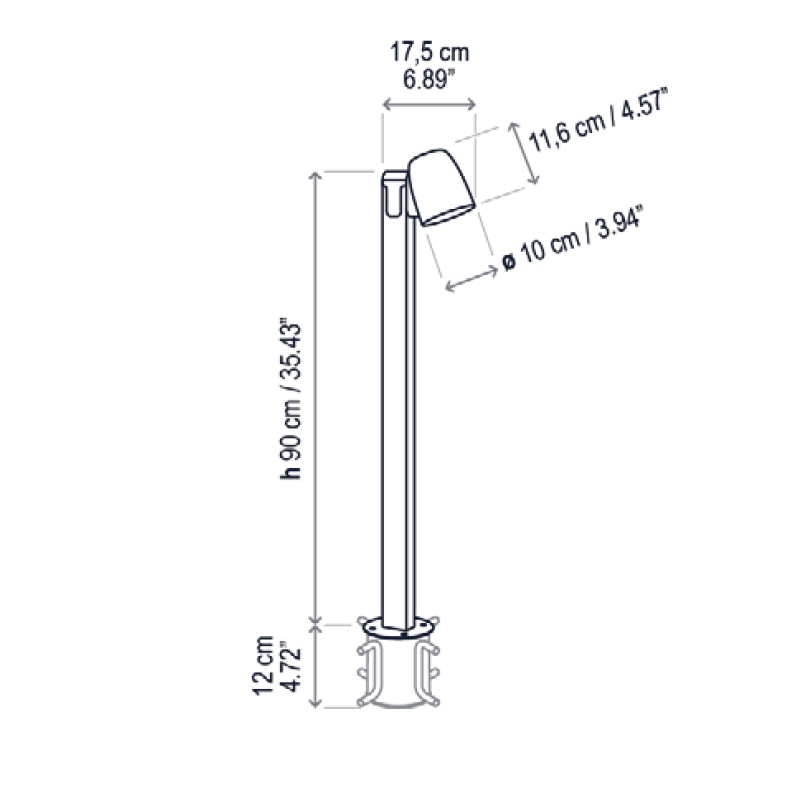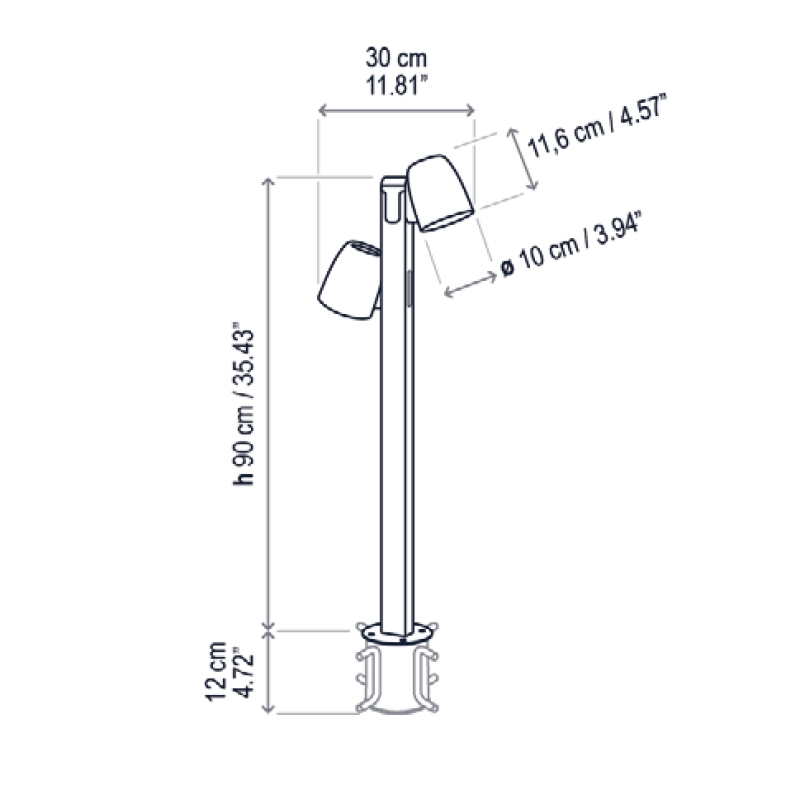 Nut von Estudi Manel Molina für Bover entworfen ist eine Stehleuchte für den Außenbereich mit Stütz- und Tragstruktur aus Edelstahl, Aluminium und PA12. Der Kopf hat eine abgerundete Form und einen Diffusor aus Polycarbonat, der eine dimmbare LED-Lichtquelle abschirmt. Nut ist in verschiedenen Ausführungen und Modellen erhältlich.