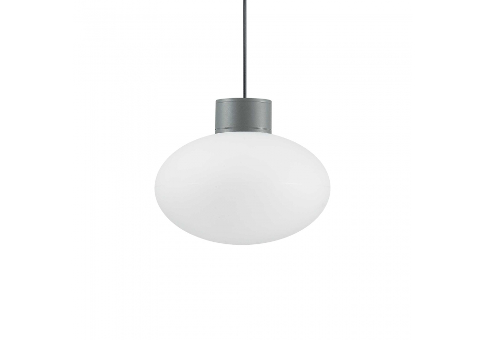 Clio entworfen und hergestellt von Ideal Lux ist eine Hängeleuchte für den Außenbereich mit einem Rahmen aus extrudiertem und gedrehtem pulverbeschichtetem Aluminium. Der Diffusor hat eine abgerundete Form, besteht aus opakweißem Kunststoff und schirmt eine LED-Lichtquelle ab. Clio ist in verschiedenen Strukturausführungen und verschiedenen Diffusormodellen erhältlich.
