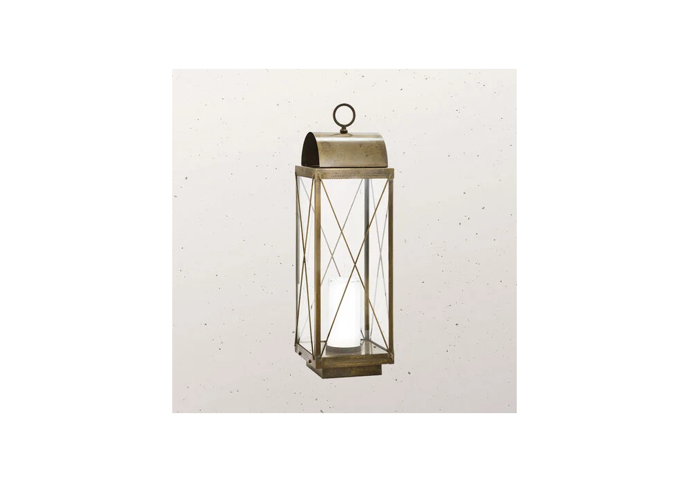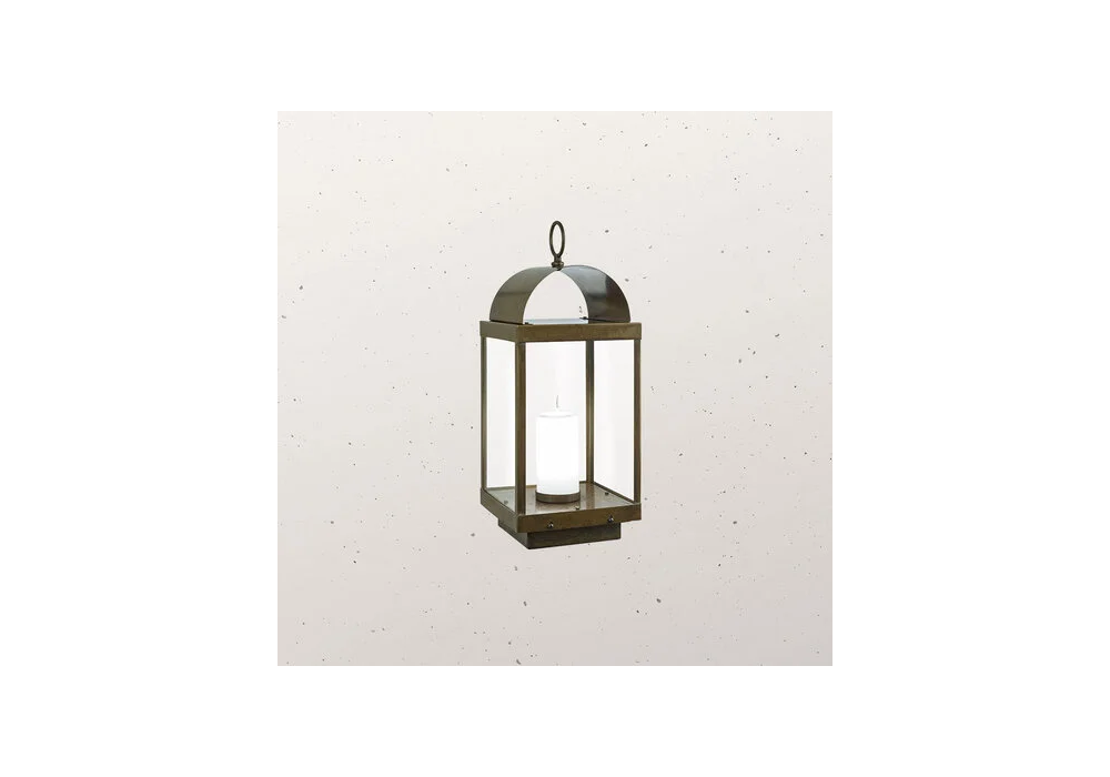 Lanterne von DT Studio für Il Fanale entworfen ist eine viereckige Stehleuchte für den Außenbereich aus Metall mit antikem Messing und antikem Eisenrahmen. Die verwendete Lichtquelle ist vom Typ LED mit Triac-Dimmbarkeitssystem. Die Laterne ist in verschiedenen Ausführungen und mit oder ohne Erdnagel zur Befestigung am Boden erhältlich.