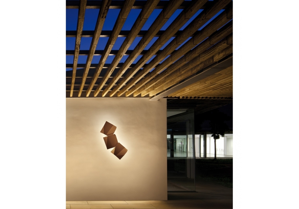 Origami Multi von Ramón Esteve für Vibia entworfen ist eine viereckige Außenwandleuchte die vollständig aus Polycarbonat besteht. Die Diffusoren bestehen aus Methacrylat und schirmen Triac-dimmbare LED-Lichtquellen ab. Origami Multi ist in verschiedenen Modellen, Ausführungen und Farbtönen der Lichtquellen erhältlich.