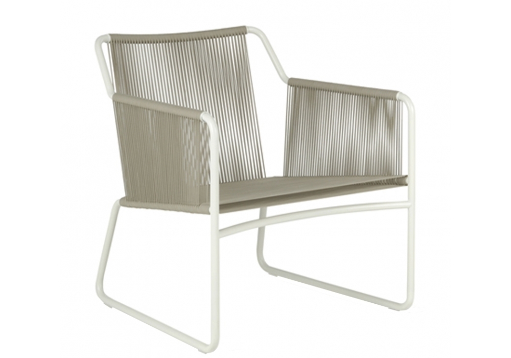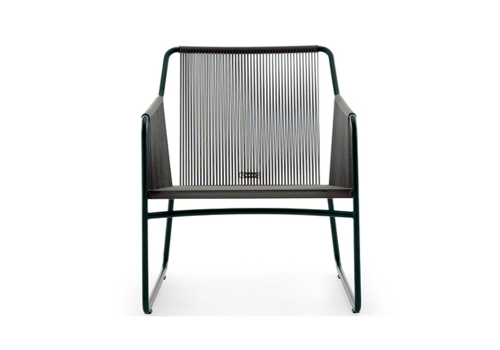 Harp 368 is an outdoor lounge chair designed by Rodolfo Dordoni for Roda. The classic string chair finds a new outdoor dimension, where polyester trails its infinite filaments around a tubular stainless steel structure in one continuous outline. Harp is a celebration of a craft manufacturing: a never-ending weave of cords that twine the stainless steel frame drawing lines that look continuous to the human eye. The structure, made in painted stainless steel welded by hand, and the cords, in a double polyester twisted thread with a cotton finishing, is available in milk/sand, smoke/grey, carob/tobacco, smokeolive, milkolive.