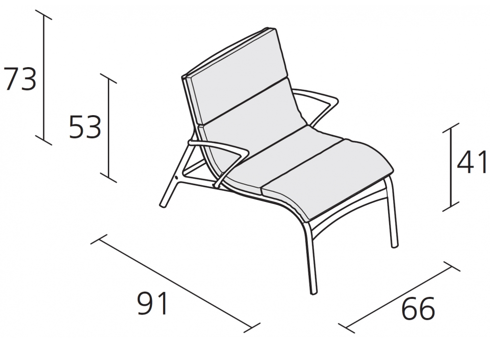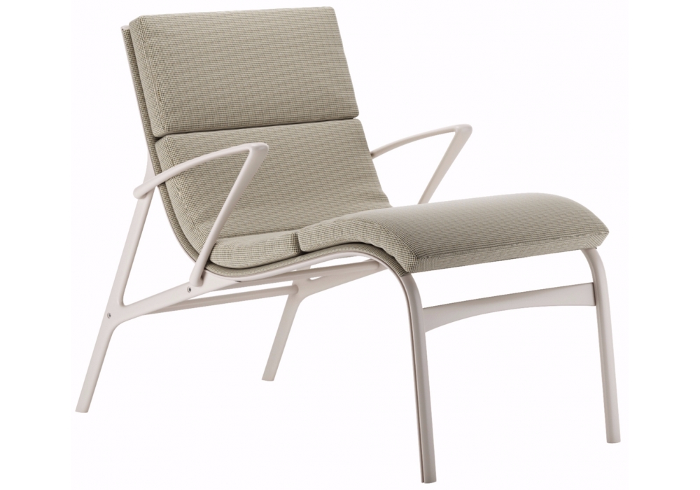 463 Armframe Soft, entworfen von Alberto Meda für Alias, ist ein kleiner Sessel mit Armlehnen für den Außenbereich. Struktur aus extrudiertem Aluminiumprofil und Aluminiumdruckgusselementen. Sitz und Rückenlehne aus Tempotest®-Stoff.