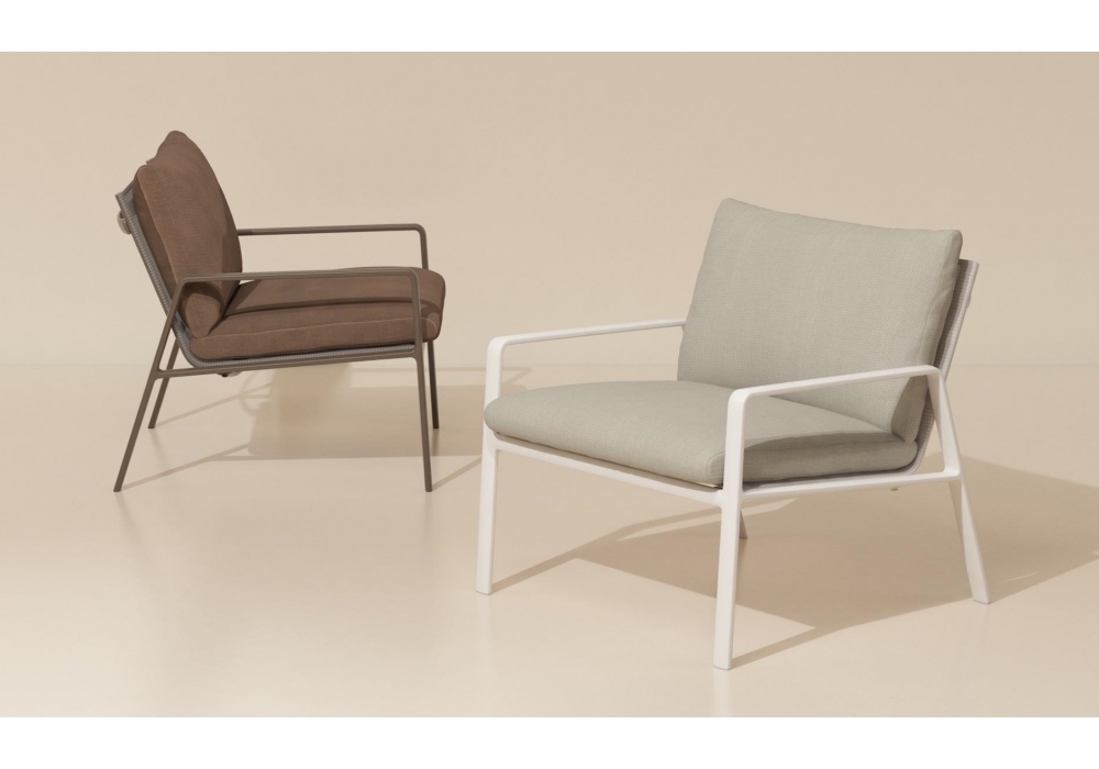 Park Life von Jasper Morrison für Kettal entworfen ist ein Clubsessel mit einem Gestell komplett aus lackiertem Aluminium. Die Schale besteht aus Stoff mit gepolsterten und mit Stoff überzogenen Sitz- und Rückenkissen. Park Life ist in verschiedenen Ausführungen erhältlich.