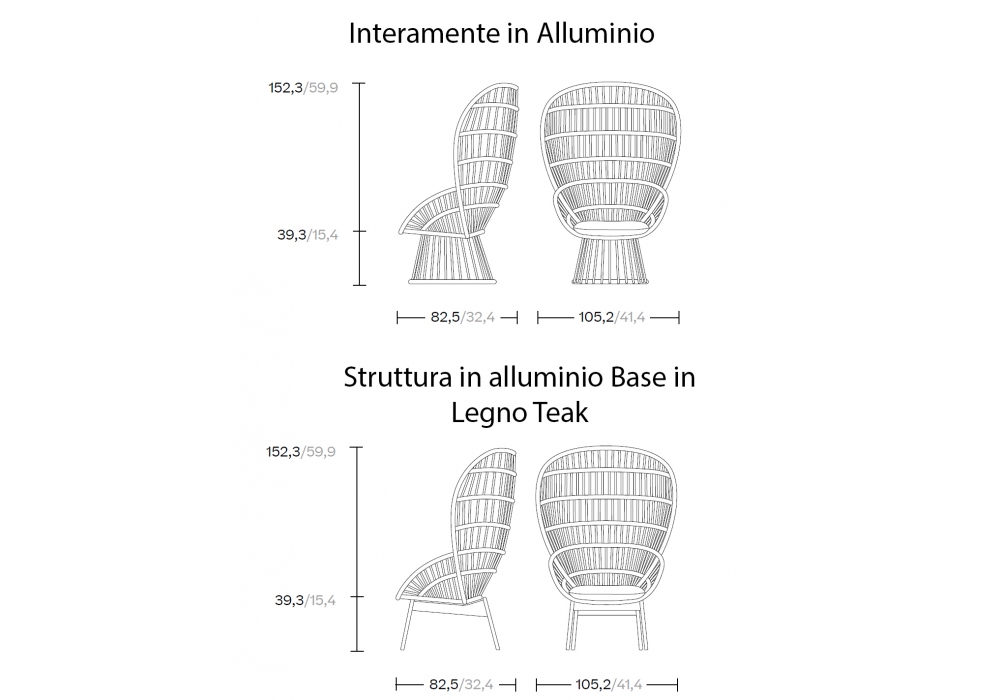 Baumaterial Alluminio; Alluminio e Legno Teak; Corda Sintetica; Tessuto.