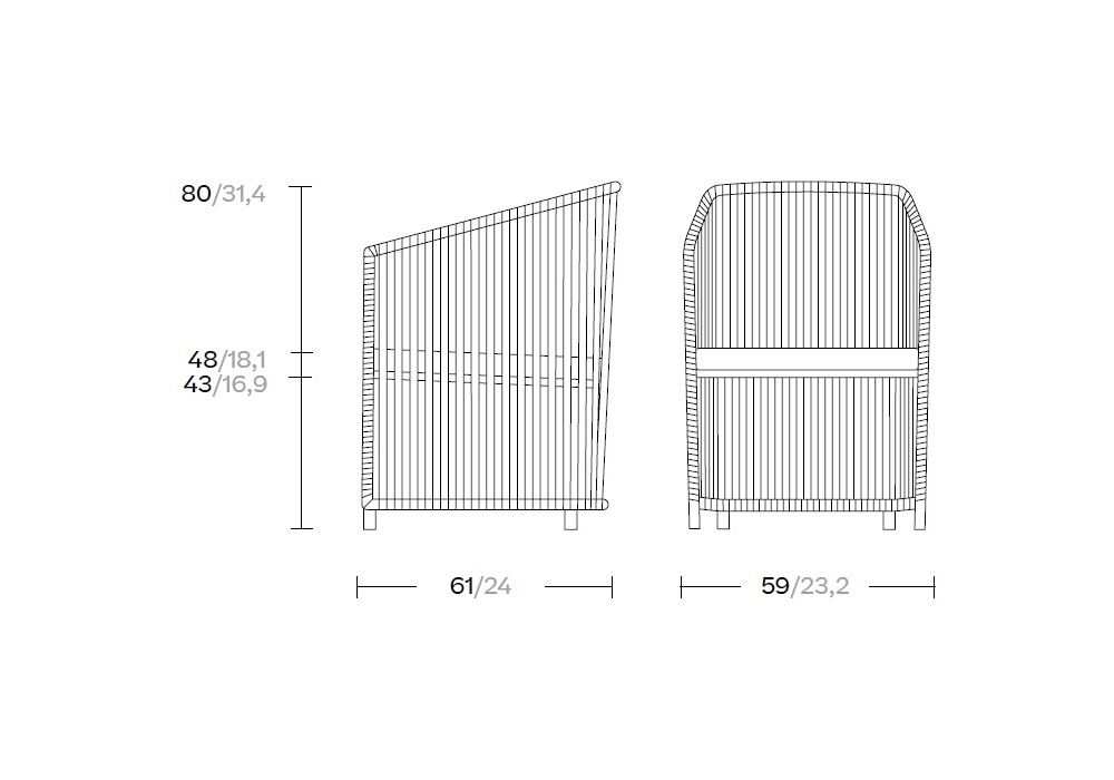 Bitta Lounge von Rodolfo Dordoni für Kettal entworfen, ist ein Esssessel durch zeichnet ihre besondere Materialkombination aus: Aluminium- Struktur, Polyesterkordeln geflochtene Schale und bequeme Stoffkissen, komplett wetterfest Materialien.