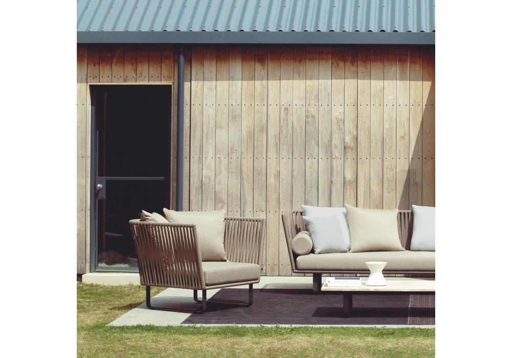 Bitta von Rodolfo Dordoni für Kettal entworfen, ist ein Club Sessel durch zeichnet ihre besondere Materialkombination aus: Basis aus Aluminium, Polyesterkordeln geflochtene Schale und bequeme Stoffkissen, komplett wetterfest Materialien.
