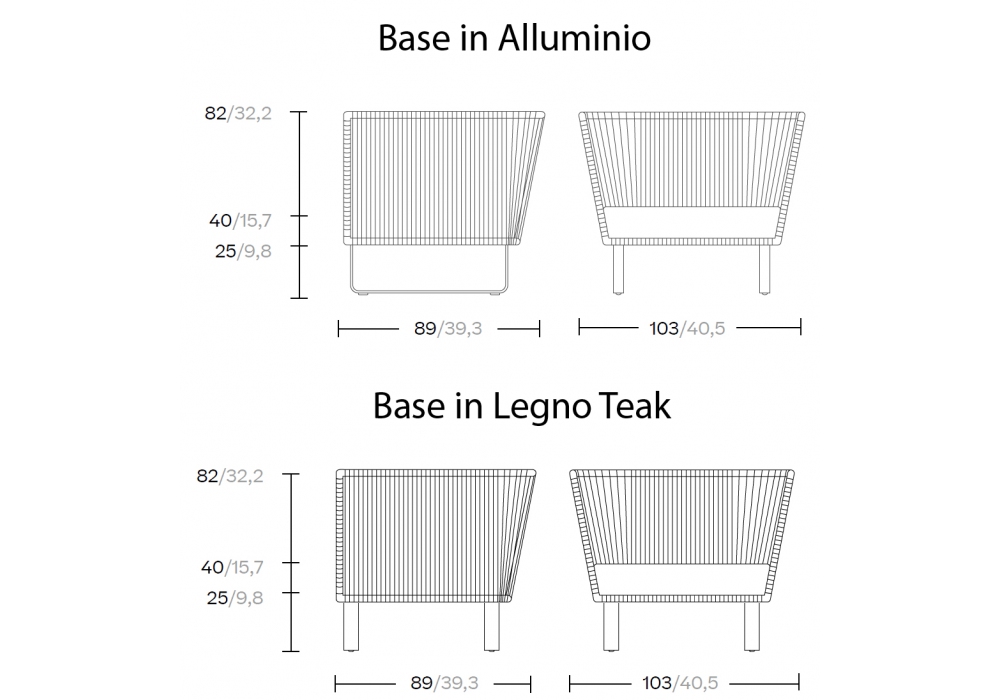 | Baumaterial | Alluminio; Alluminio e Legno Teak; Corda Sintetica; Tessuto. |