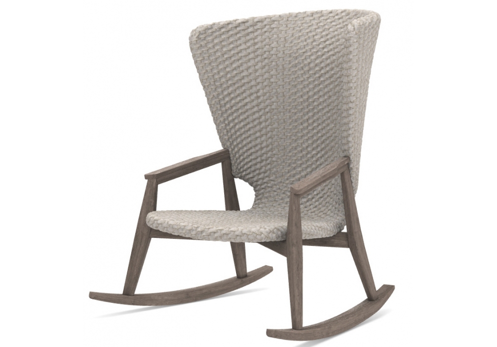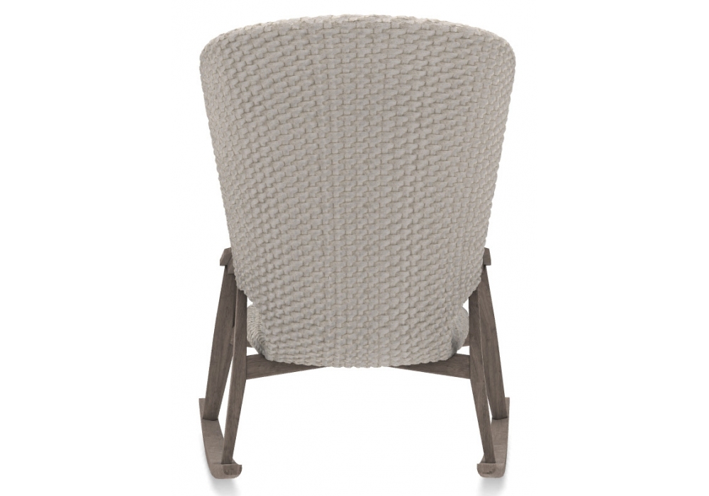 Knit von Patrick Norguet für Ethimo entworfen, ist ein Schaukelsessel mit Struktur aus Teakholz und Bezug aus Seil in verschiedenen Ausführungen. Knit ist mit oder ohne Keulenkissen erhältlich.