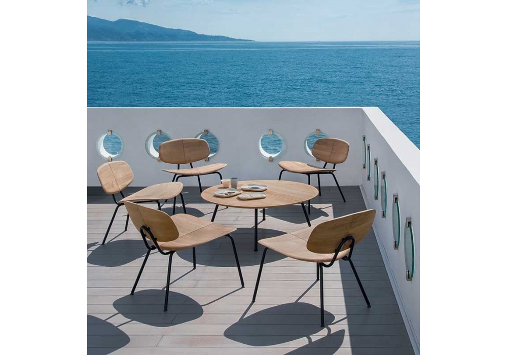 Agave, von Mattia Albicini für Ethimo entworfen, ist ein Sessel mit Struktur aus Metall und natürlichem Teakholz. Der Sitz cusinatura ist in geformter oder runder Ausführung in verschiedenen Ausführungen erhältlich.