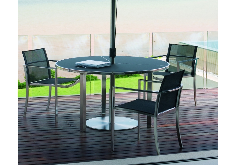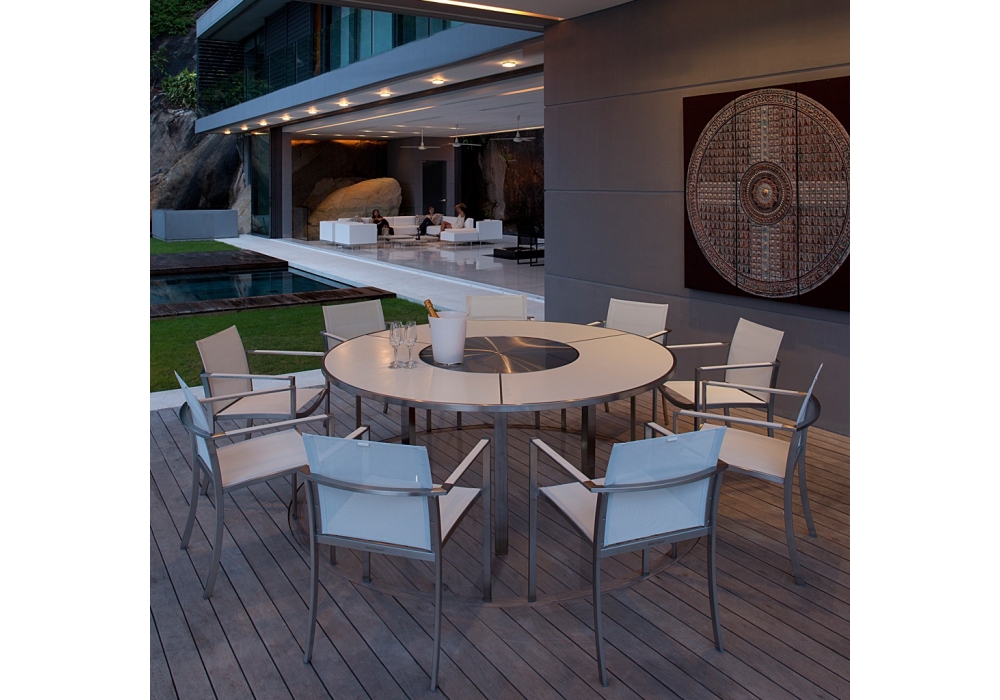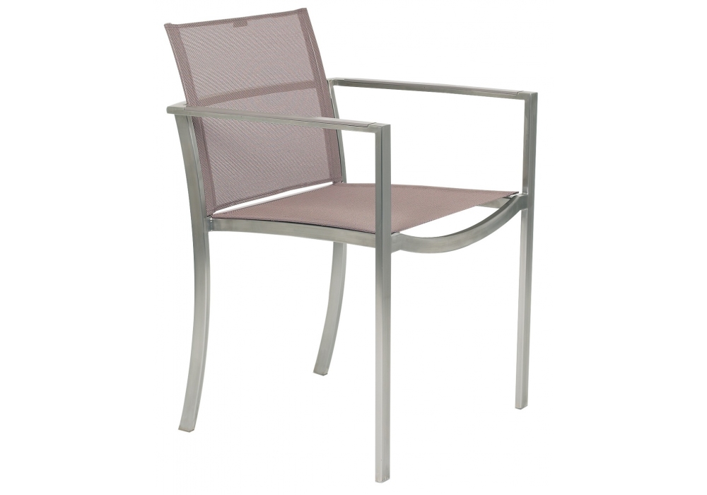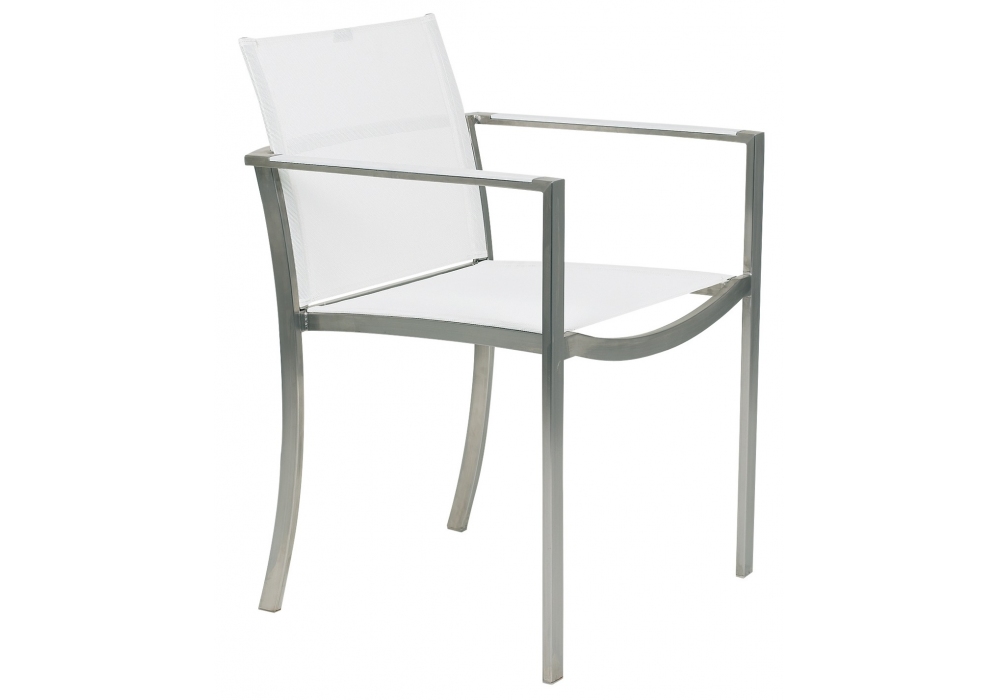O-Zon, von Kris Van Puyvelde für Royal Botania entworfen, ist ein Armstuhl mit Gestell aus Edelstahl oder Aluminium. Sitz- und Rückenpolster aus Batyline® in verschiedenen Farben. Verfügbar in verschiedenen Ausführungen.