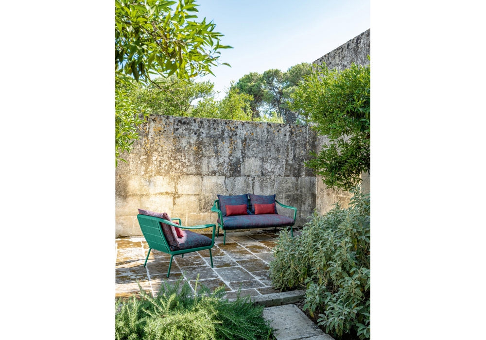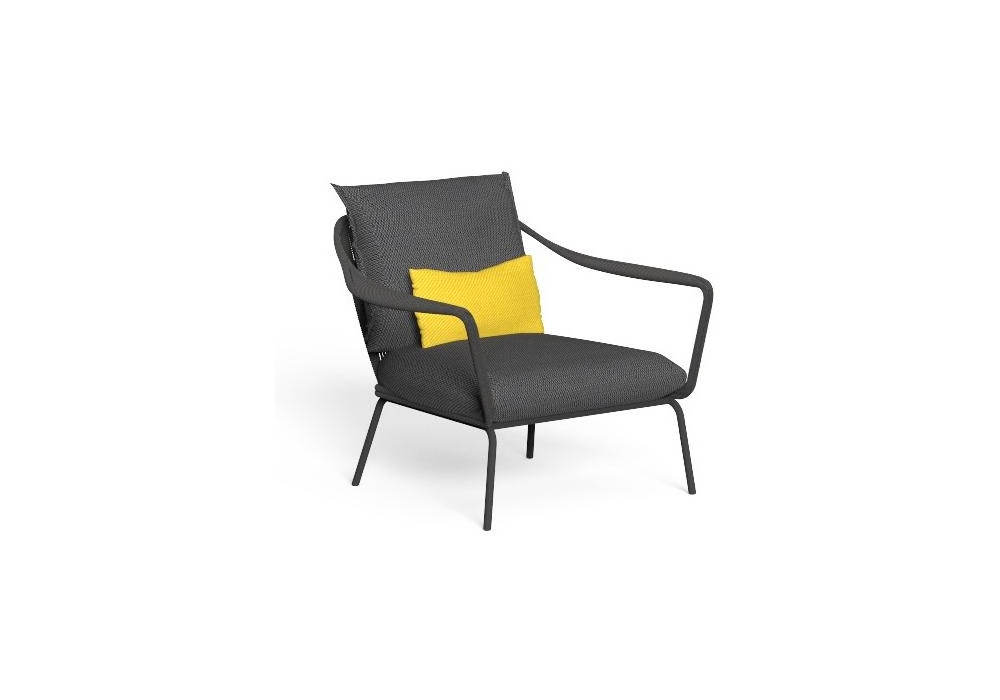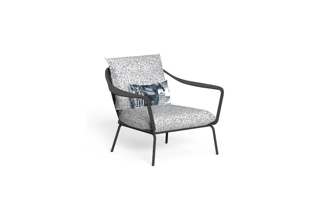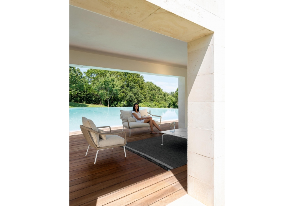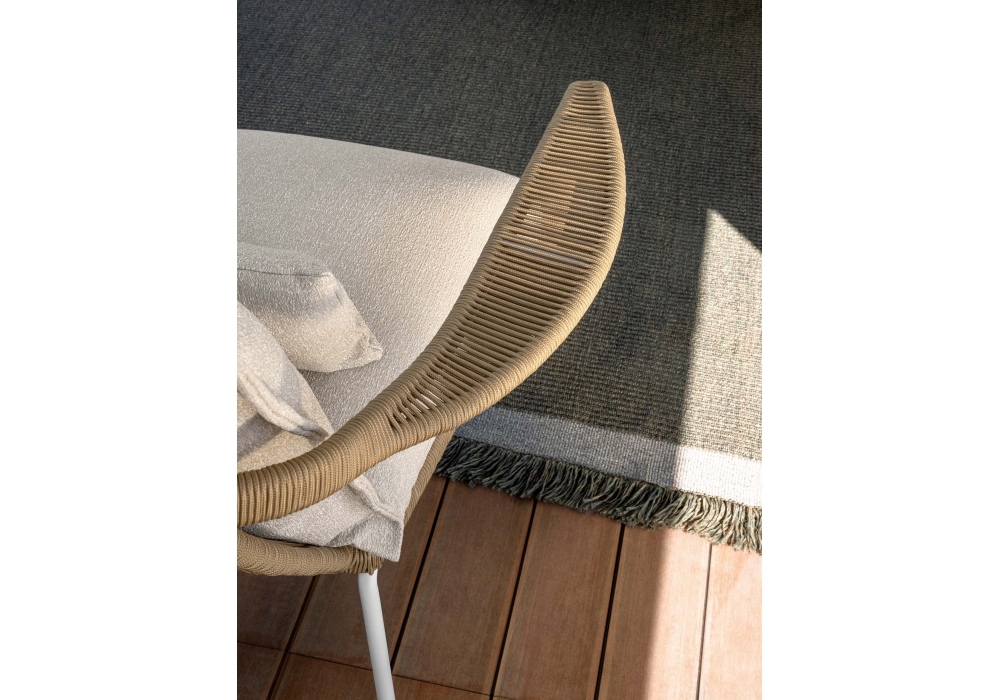 Cruise Alu Living von Ludovica und Roberto Palomba für Talenti entworfen, ist ein armachair mit Struktur aus Kunststoffseil, die die Rückenlehne und die Armlehnen Wraps, entfernbaren Kissen mit dem Schnelltrockenschaum Polsterung und bedeckt mit Stoffen für wasserdichte Natur gestaltet.