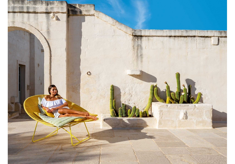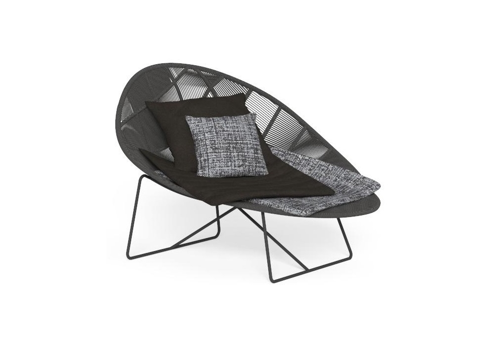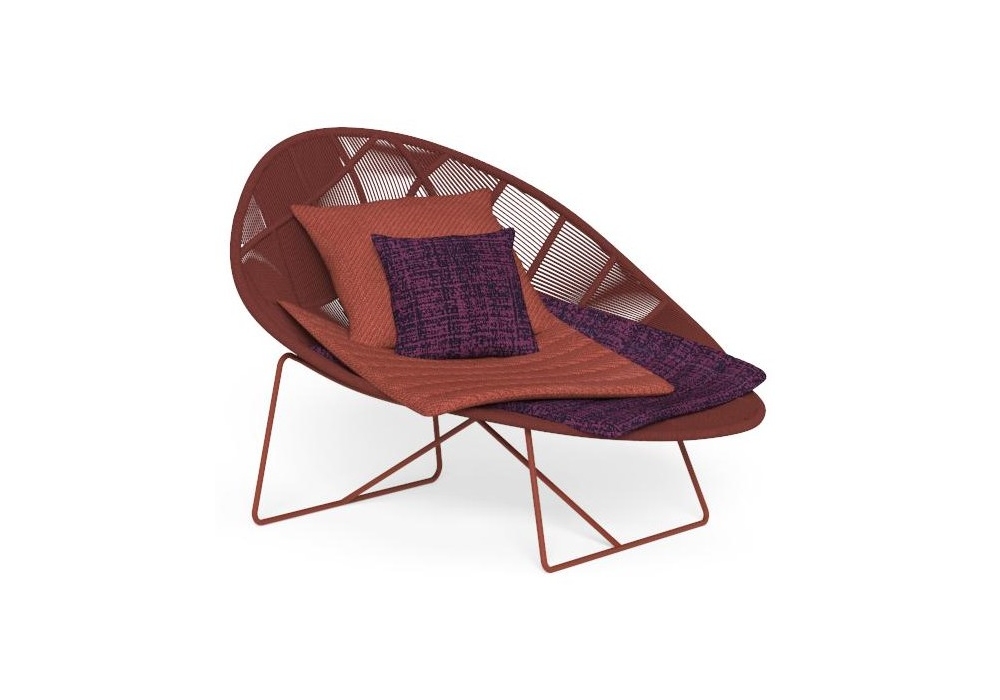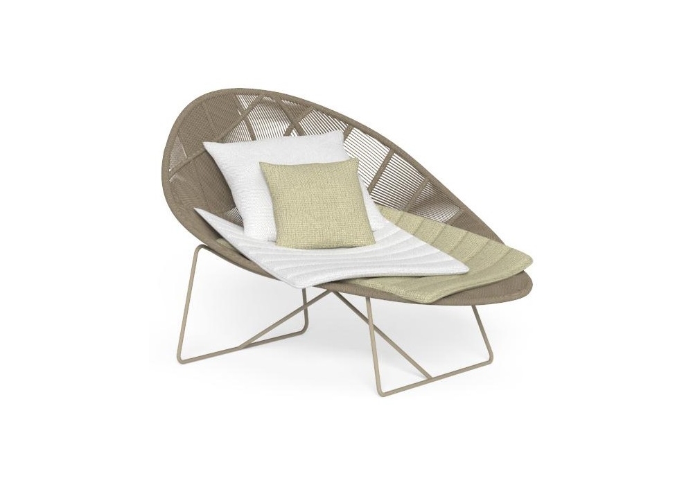 Panama, entworfen von Ludovica und Roberto Palomba für Talenti, ist ein Relax-Sessel mit Aluminiumstruktur, gewebt mit synthetischem Seeseil, erhältlich in verschiedenen Farben, 2 Sitzkissen in verschiedenen Ausführungen.