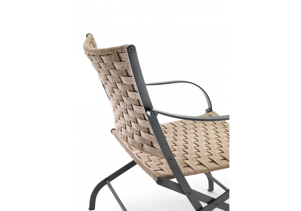 Carlotta von Antonio Citterio für Flexform entworfene ist ein kleiner Sessel, der zur Outdoor-Kollektion gehört. Struktur aus lackiertem rostfreiem Stahl. Sitz und Rückenlehne aus rostfreiem Stahl mit Polypropylen-Schnurgeflecht in verschiedenen Farben. Auf Anfrage können Sie auch den passenden Pouf anfordern.