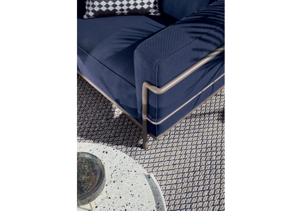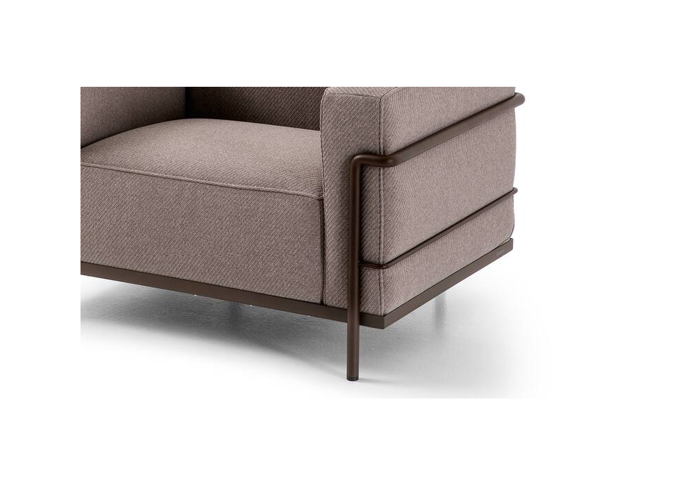 3 Fauteuil Grand Confort, Grand Modèle, Outdoor von Le Corbusier, Pierre Jeanneret und Charlotte Perriand für Cassina entworfen, ist ein Outdoor-Sessel mit lackiertem Rahmen, Sitz und Rückenlehne aus Stoff verfügbar in verschiedenen Ausführungen.