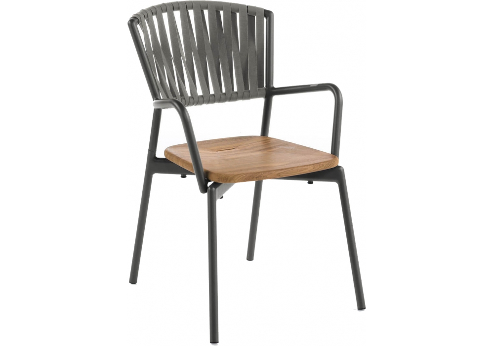 Piper 121 von Rodolfo Dordoni für Roda entworfen, ist ein kleiner Stuhl aus pulverbeschichtetem Aluminiumrohr. Rückenlehne aus Polyester und Sitz aus Teakholz oder Polyurethanharz. Es ist in verschiedenen Ausführungen erhältlich.