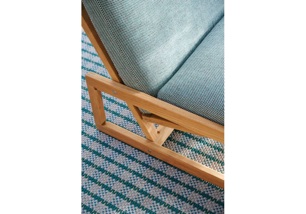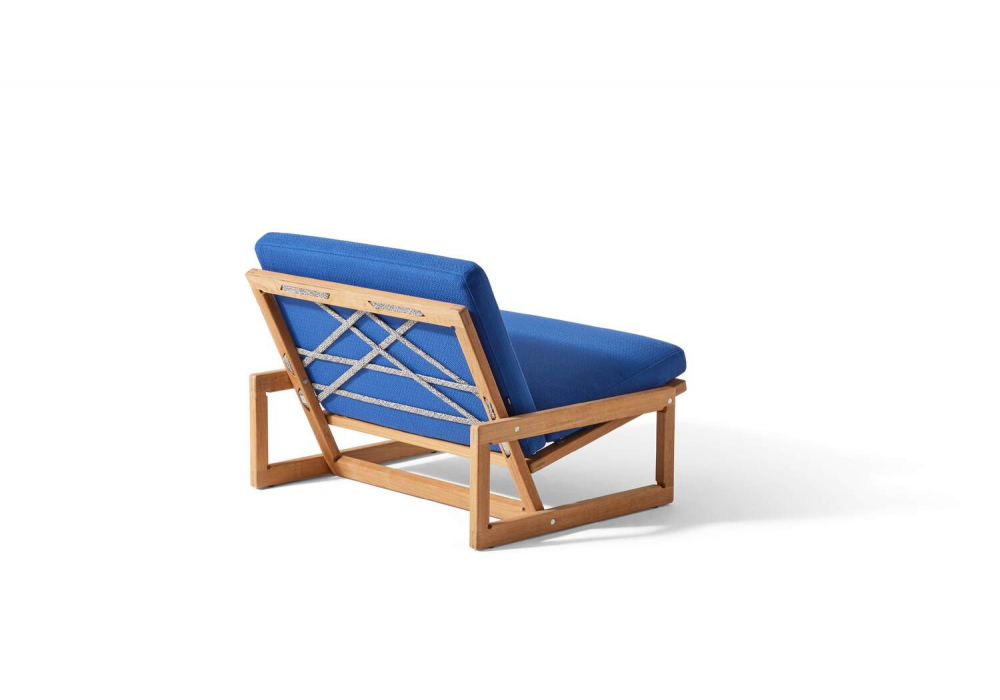 Carlotta von Afra & Tobia Scarpa für Cassina entworfen, ist ein Outdoor-Sessel mit natürlicher Teakholzstruktur, Rückenlehne und Sitz in Mamba-Seil mit Stoffkissen. Verfügbar in mehreren Ausführungen.