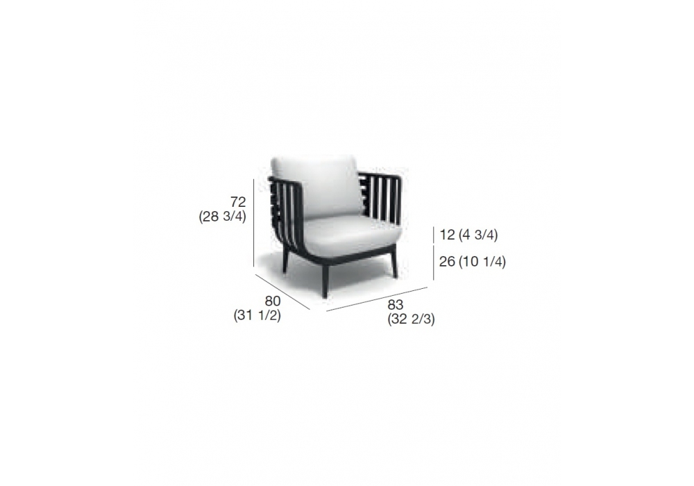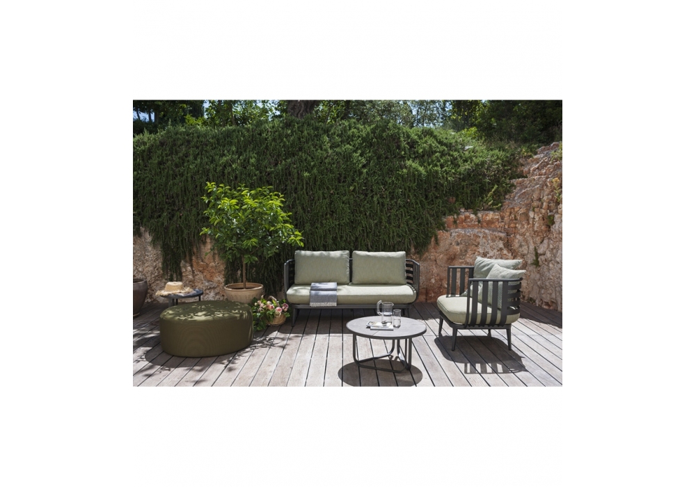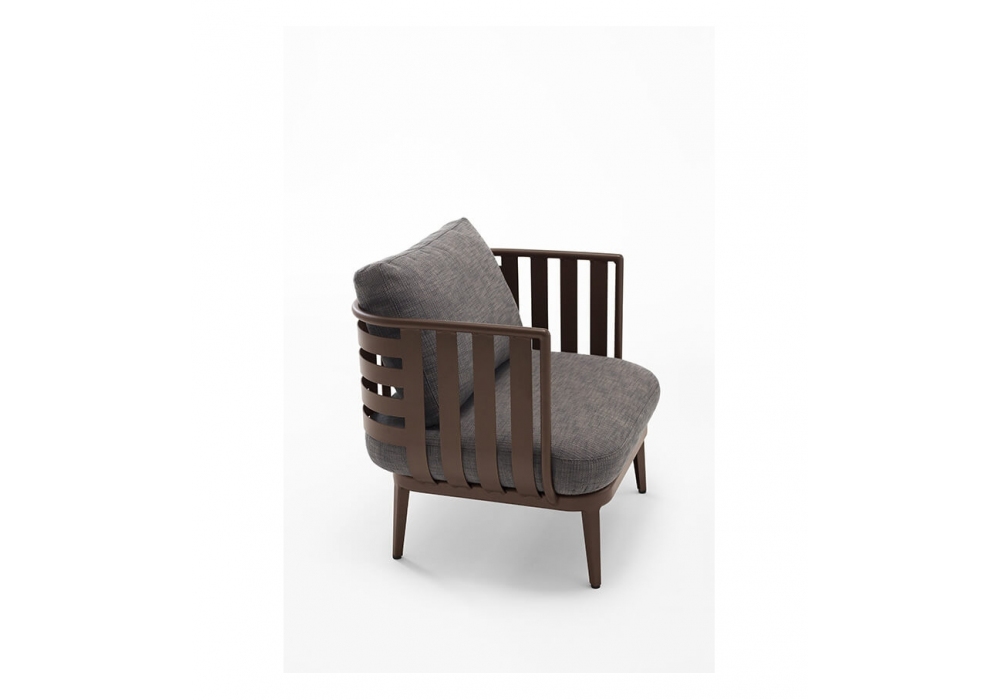 Thea von Adam D. Tihany für Roda entworfen, ist ein Outdoor-Sessel mit Struktur aus pulverbeschichtetem Aluminium. Es ist in verschiedenen Bezugsstoffen erhältlich.