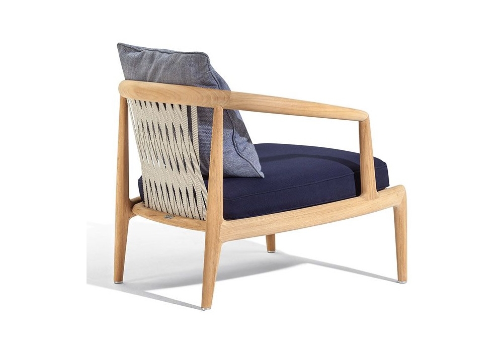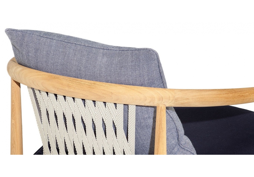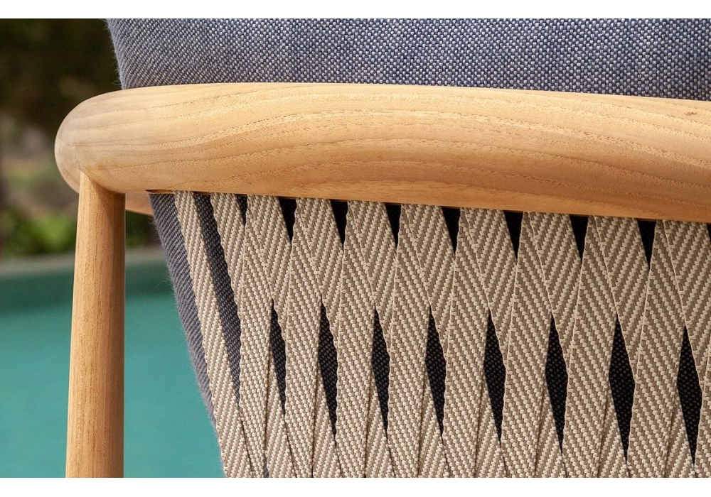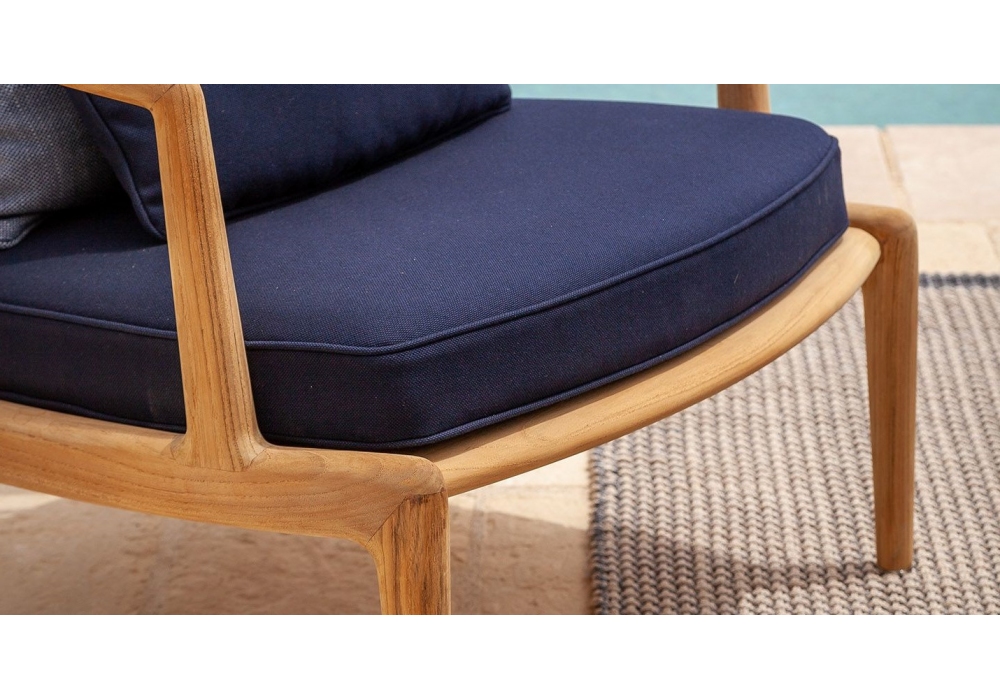 The Secret Garden von Roberto Lazzeroni für Poltrona Frau entworfen, ist ein Outdoor-Sessel, dessen Form mit konvergierenden Linien von Vintage- Booten inspiriert ist. Die Struktur aus massivem Teakholz in natürlicher Ausführung ist dezent, umhüllend und natürlich Die Beine tragen den Holzlattenrost, ein gemeinsames Merkmal aller Sitze der Kollektion, auf dem das gepolsterte Kissen ruht. Die Rückenlehne stützt das Rückenkissen und ist aus verflochtenem Baumwollflachgewebe in Ecru und Taupe gearbeitet.
