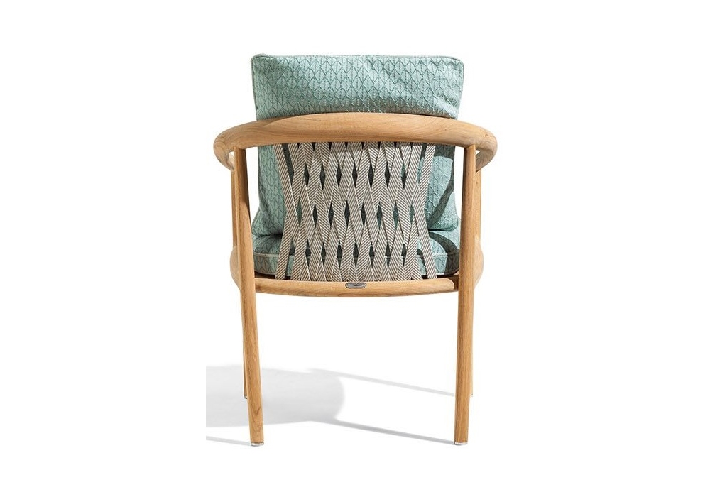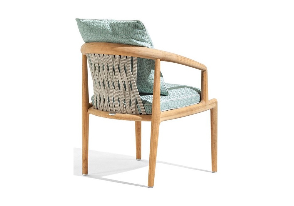 The Secret Garden von Roberto Lazzeroni für Poltrona Frau entworfen, ist ein Outdoor-Armstuhl, dessen Form mit konvergierenden Linien von Vintage- Booten inspiriert ist. Die Struktur aus massivem Teakholz in natürlicher Ausführung ist dezent, umhüllend und natürlich Die Beine tragen den Holzlattenrost, ein gemeinsames Merkmal aller Sitze der Kollektion, auf dem das gepolsterte Kissen ruht. Die Rückenlehne stützt das Rückenkissen und ist aus verflochtenem Baumwollflachgewebe in Ecru und Taupe gearbeitet.