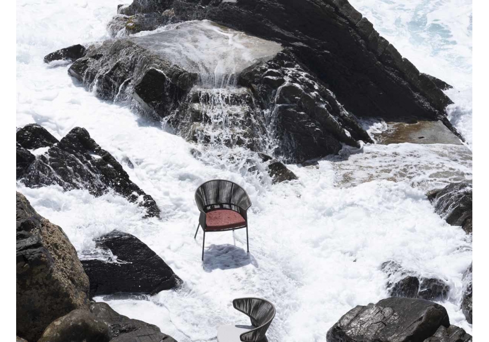 Ola, von Radice Orlandini für Potocco entworfen, ist ein Outdoor-Sessel, der vollständig aus lackiertem Metall in verschiedenen Ausführungen besteht. Sitzfläche und Rückenlehne sind mit einem 8 mm Fliegenseilgewebe bezogen. Kissenbezug in verschiedenen Stoffen.