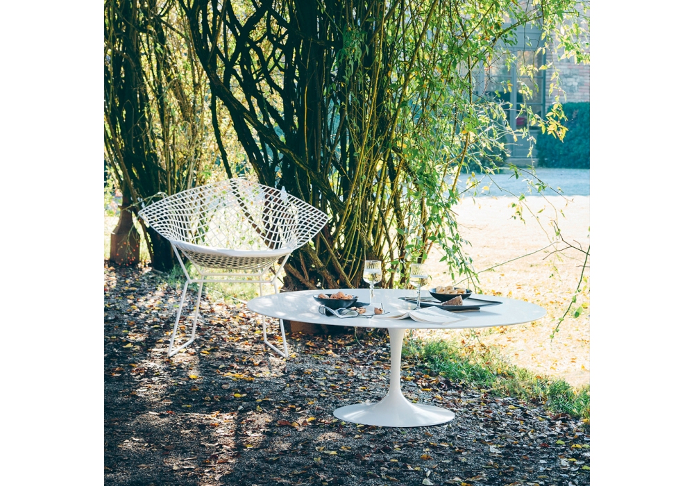 Bertoia Diamond Outdoor von Harry Bertoia für Knoll entworfen, ist ein Kleiner Sessel mit Vinylkissen in verschiedenen Ausführungen. Edelstahlrahmen mit schützender Rilsan-Beschichtung.