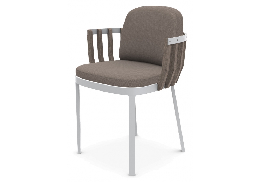 Swing von Patrick Norguet für Ethimo entworfen, ist ein Sessel mit Gestell aus Teakholz und lackiertem Aluminium. Die Kissen sind mit Polypropylengewebe in wasserabweisender oder Standardausführung bezogen. Swing ist in verschiedenen Ausführungen erhältlich.