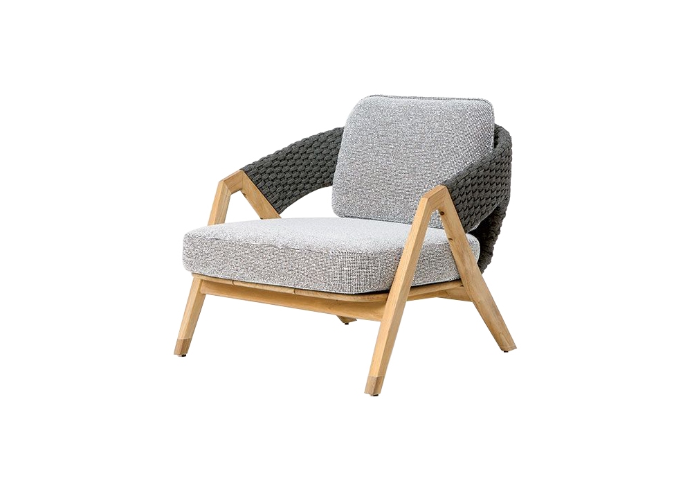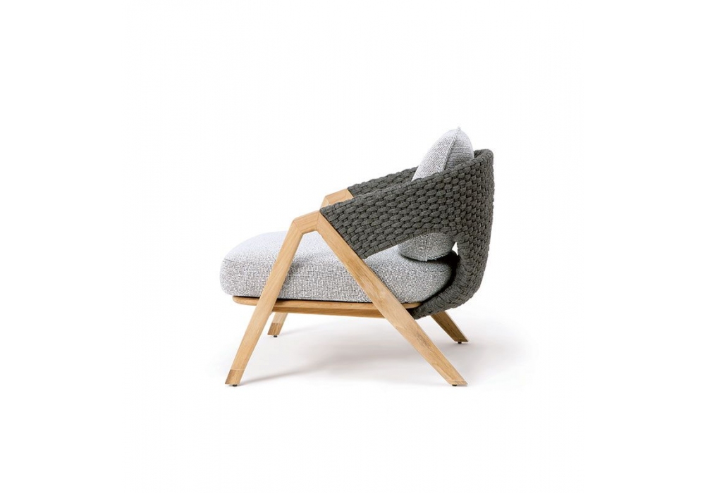 Knit von Patrick Norguet für Ethimo entworfen, ist ein strukturierter Sessel aus Teakholz in natürlicher oder gebeizter Ausführung, der mit einem Seilgeflecht bedeckt ist. Die Sitz- und Rückenkissen sind aus Polypropylengewebe. Strick ist in verschiedenen Ausführungen und Beschichtungen erhältlich.