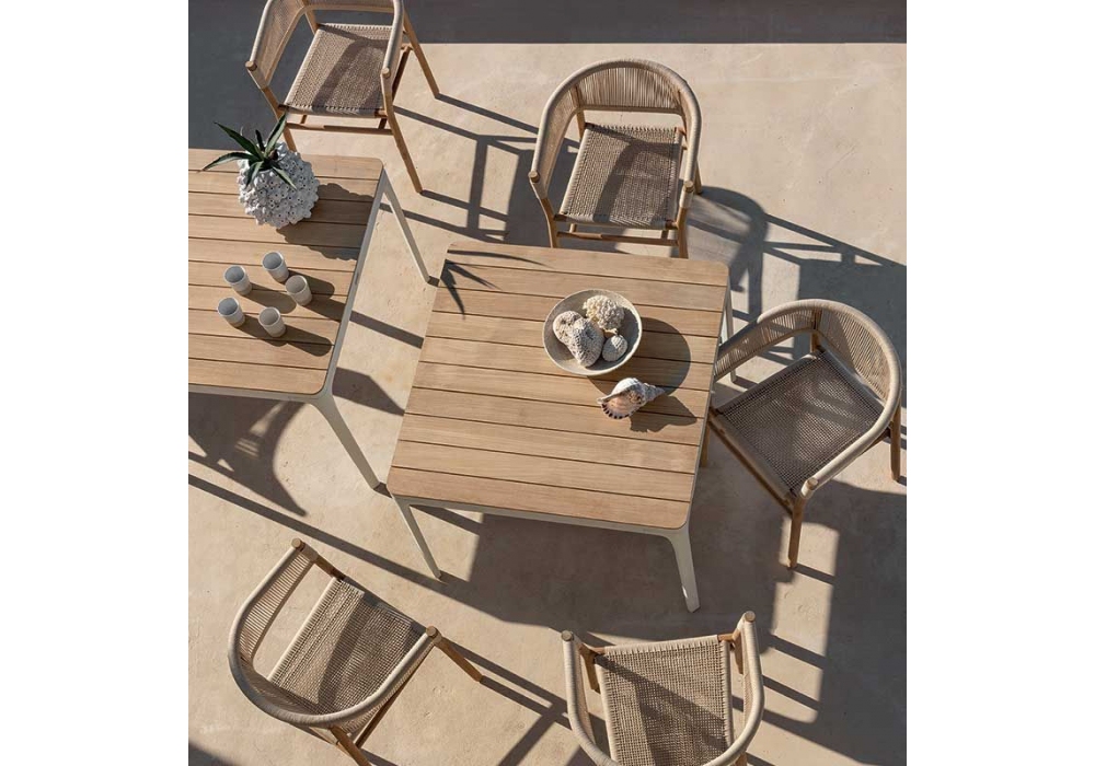 Kilt Teak von Marcello Ziliani für Ethimo entworfen, ist ein Sessel mit tragender Struktur aus Teakholz. Sitzfläche und Rückenlehne sind mit einem Seilgeflecht bespannt. Kilt Teak ist in verschiedenen Ausführungen erhältlich.
