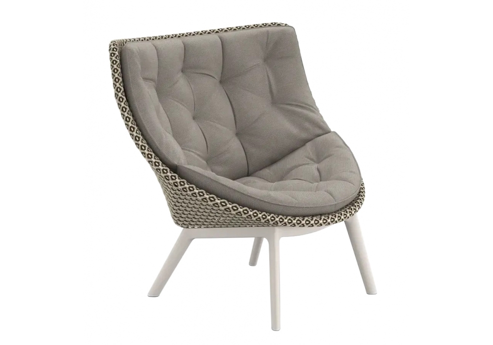 Die von Sebastian Herkner für Dedon entworfene Mbrace-Kollektion kommt in einem Materialmix daher. Die Sitze bestehen aus DEDON-Fasern, die über einen Aluminiumrahmen gewebt sind, während die Basis aus einer pulverbeschichteten, druckgegossenen, einteiligen Aluminiumbasis besteht.