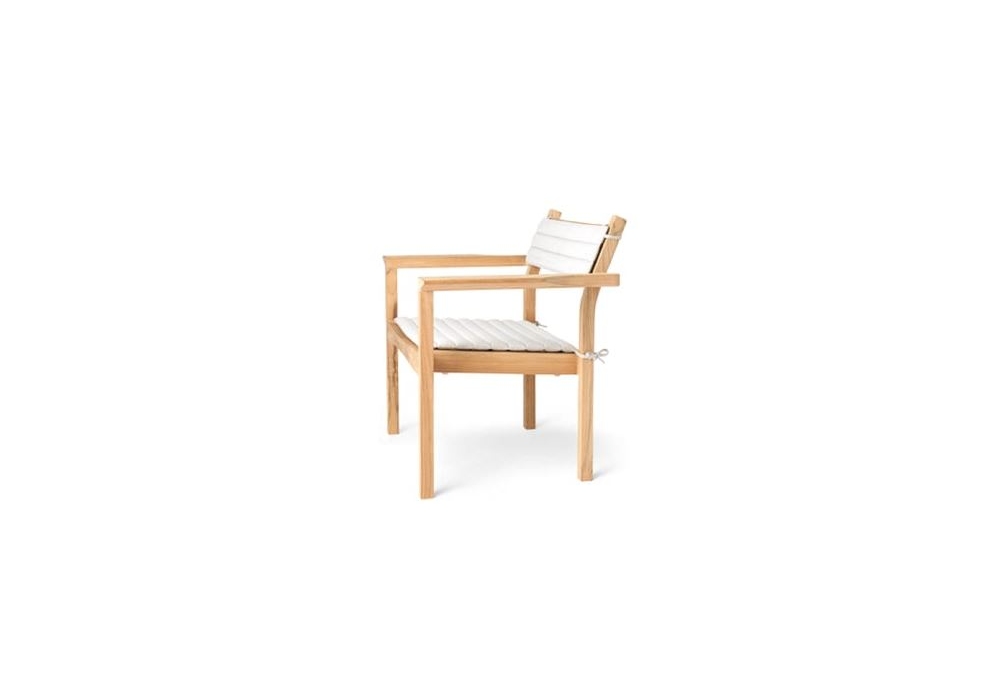 AH601 von Alfred Homann für Carl Hansen & Søn entworfen, ist ein Sessel mit Armlehnen mit Gestell aus massivem Teakholz. Erhältlich mit oder ohne Sitz- oder Rückenkissen, bezogen mit Stoff Agora Life Oat 1760.