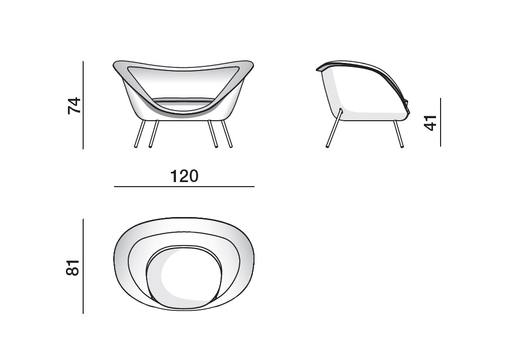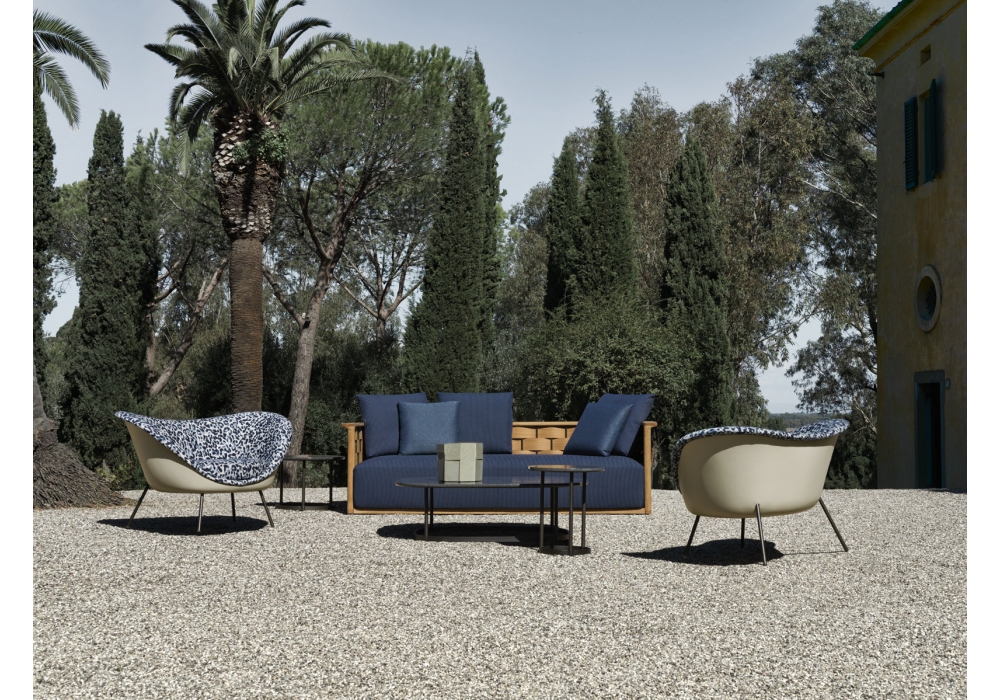 D.154.2 von Gio Ponti für Molteni&C entworfen, ist ein Sessel mit brünierten Metallfüßen, Außenstruktur aus hochdichtem Polyurethanharz, Polsterung aus flexiblem Polyurethanschaum und Stoffbezug.
