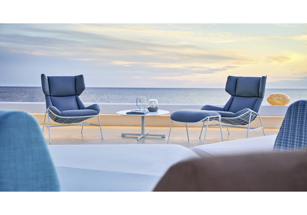 Summer Set von Cristophe Pillet für Varaschin entworfen, ist ein Bergere mit Struktur aus pulverbeschichtetem Stahl. Kissen mit Dryfeel-Gummipolsterung für den Außenbereich. Erhältlich in verschiedenen Ausführungen.