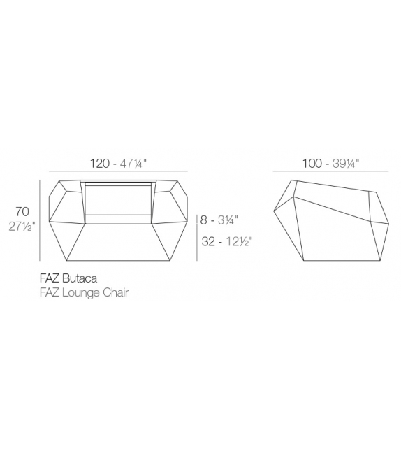 Faz von Ramón Esteve für Vondom entworfen, ist ein Sessel aus Polyethylenharz durch Rotationsformen. 100 % recycelbar. Geeignet für den Innen- und Außenbereich. Verfügbar in mehreren Ausführungen.