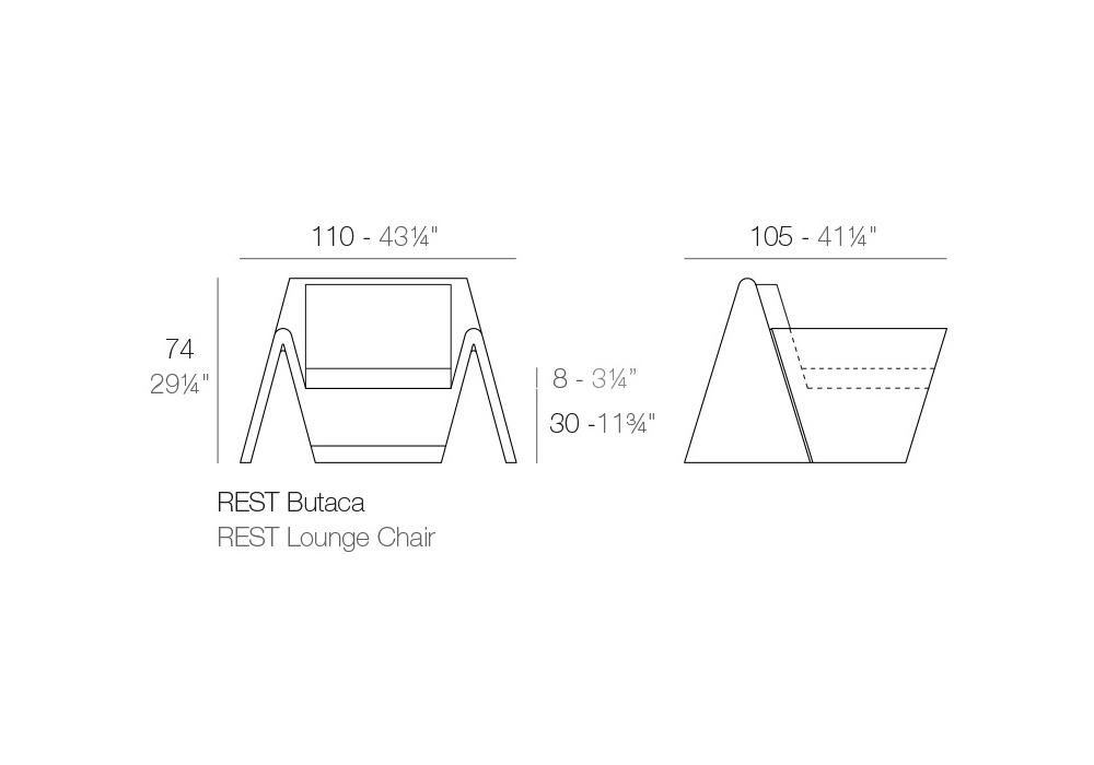 Rest ist ein Sessel für den Innen- und Außenbereich, der im Rotationsformverfahren hergestellt wird. REST ist eine IN&OUT-Möbelkollektion, die von den Architekten Joaquin Torres und Rafael Llamazares (ACero) für die Marke VONDOM entworfen wurde. Eine Kollektion, die von ORIGAMI inspiriert ist, einer Kunst japanischen Ursprungs, die auf dem Falten von Papier basiert, um Figuren in verschiedenen Formen zu erhalten.
