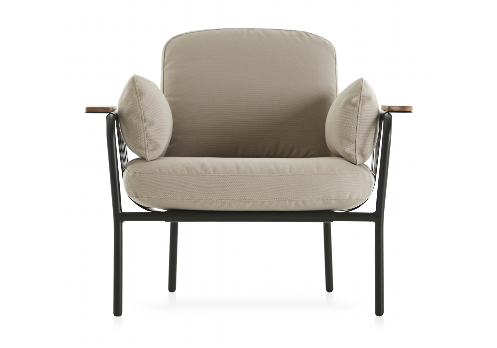 Capa von Søren Rose für Gandia Blasco entworfen, ist ein Loungesessel aus pulverbeschichtetem Aluminium. Armlehnen aus Porzellan (optional) oder Iroko-Holz. Sitz und Rückenlehne aus Polyurethanschaum und Polyesterfaser mit wasserabweisendem Bezug. Kissen aus Polyesterfaser mit wasserabweisendem Bezug. Verfügbar in verschiedenen Ausführungen.