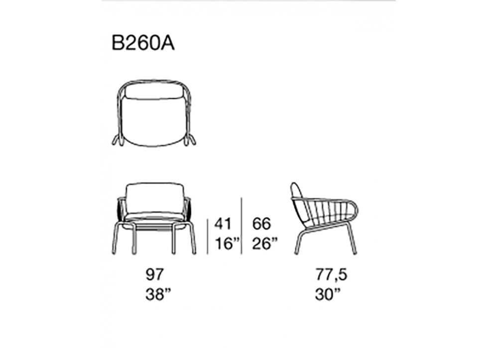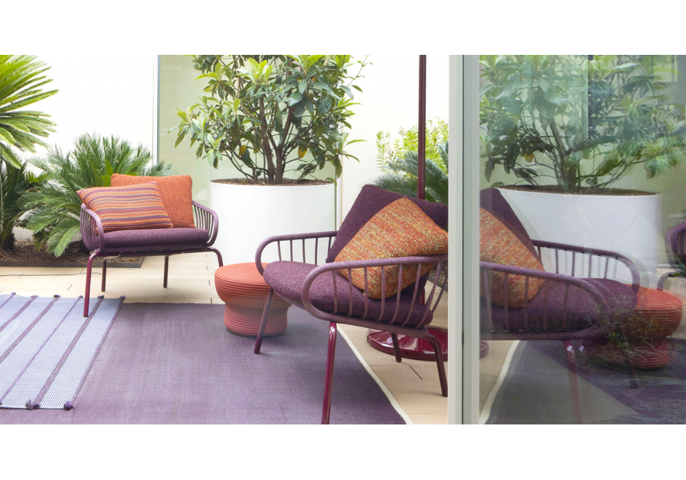 Erica von Gianluca Abbadessa für Paola Lenti entworfen, ist ein geschwungener Sessel aus Aluminium. Gestell aus glänzend lackiertem Aluminium mit Kunststoffspitzen und Aluminiumschale mit Twiggy-Garngeflecht. Sitz- und Rückenpolster mit abnehmbarem Stoffbezug in verschiedenen Ausführungen.