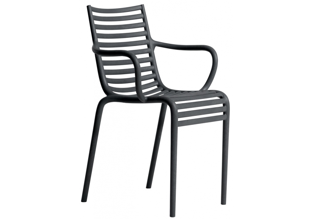 PIP-e is a small armchair designed by Philippe Starck for Diadre. Even a classical image, as a railed chair, in the hands of Philippe Starck acquires a particular connotation. In Pip-e the sequence of horizontal elements, which create the seat and back definetly, takes on a strong chiaroscuro and goes, unexpectedly, to accompany the bending of the knees.