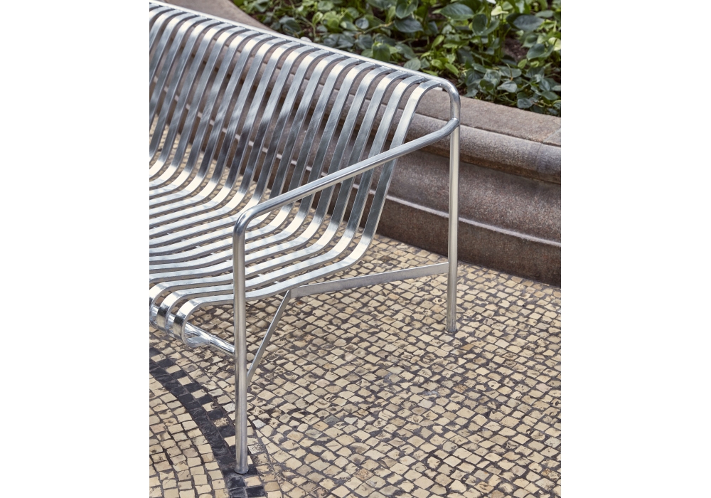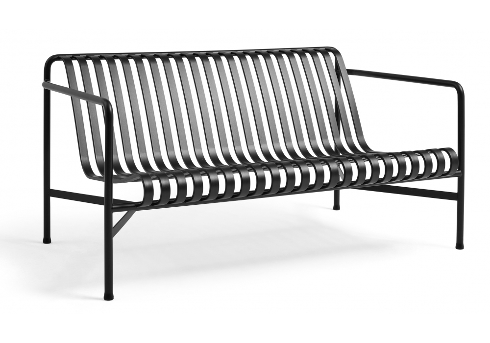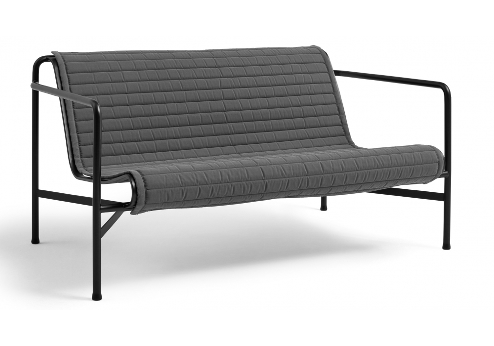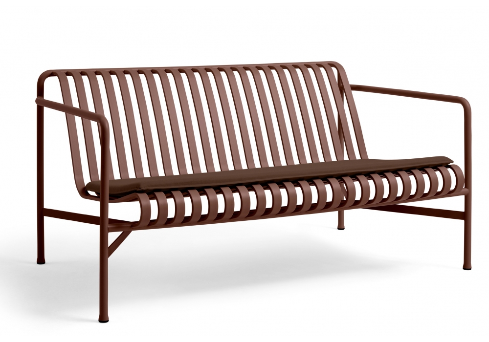 Palissade von Ronan & Erwan Bouroullec für Hay entworfen, ist ein Außen-sofa aus pulverbeschichtetem oder feuerverzinktem Stahl. Es ist möglich, das gesteppte Sitz-/Rückenkissen oder das Sitzkissen in der gleichen Farbe wie das Sofa als Zubehör hinzuzufügen. Verfügbar in verschiedenen Ausführungen.
