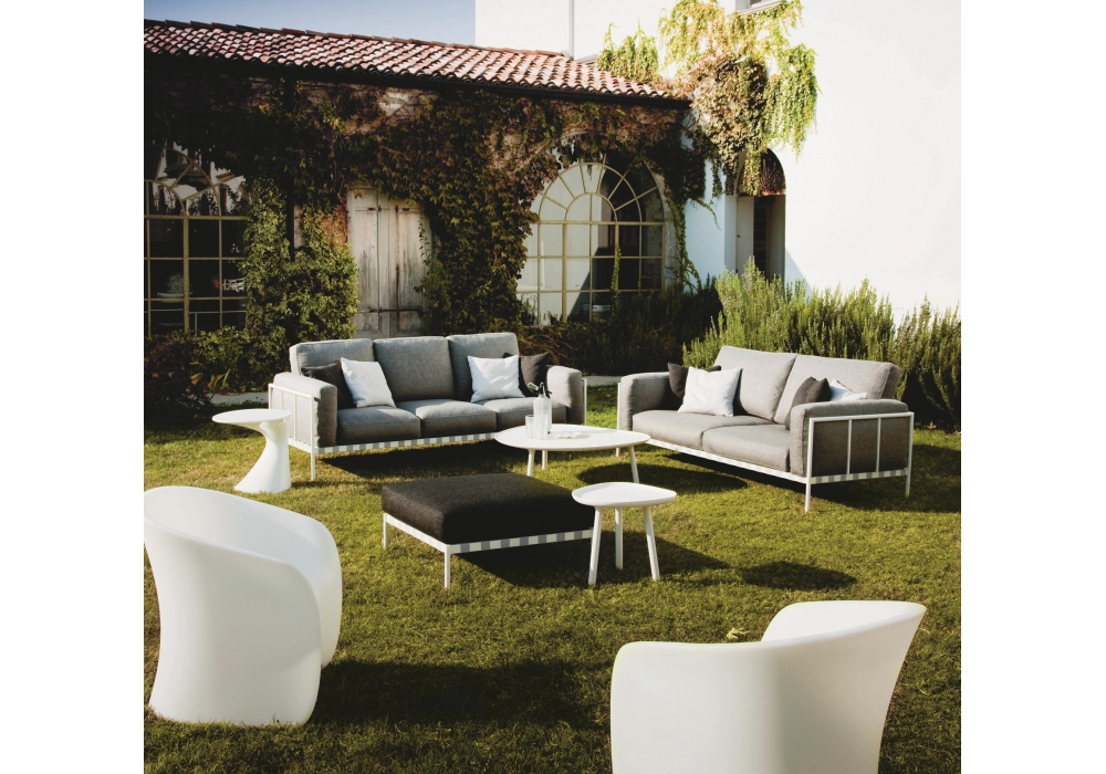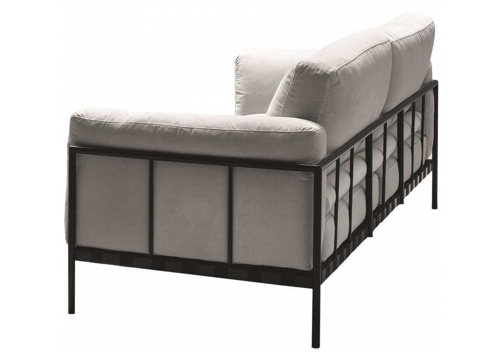1034 Parco von Emaf Progetti für Zanotta entworfen, ist ein Outdoor-Sofa mit Struktur aus weiß oder schwarz lackiertem Stahl. Alle Kissen sind aus vernetztem offenzelligem Polyether / Paineira, wasserabweisender Pflanzenfaser. Bezug aus Talasso-Stoff. In verschiedenen Abmessungen erhältlich.