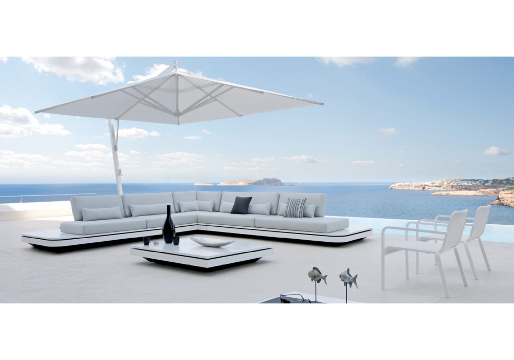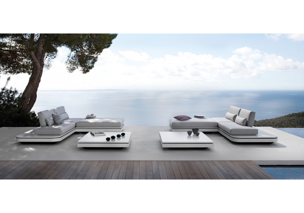 Elements, von Gerd Couckhuyt für Manutti entworfen, ist ein Sofa mit schwarzer Basis, weißer Rahmen, Topplatte in Quaryl® und Polsterung in Stoff. Verstellbare Rückenlehnen und mittels einer Rille verschiebbare Accessoires wie eine Fußbank und ein Beistelltisch, verwandeln diese Insel in einen Ort der Ruhe und Entspannung. Ein schlanker Streifen aufleuchtender LEDs verleiht Elements eine schwebende Anmutung. Maßvollen Farben und nachhaltigen Materialien mit einem weichen Touch wie Quaryl®, verleihen dem Modell seinen eleganten Stil und gewähren höchsten Sitzkomfort. Polsterung Verfügbar in mehreren Ausführungen.