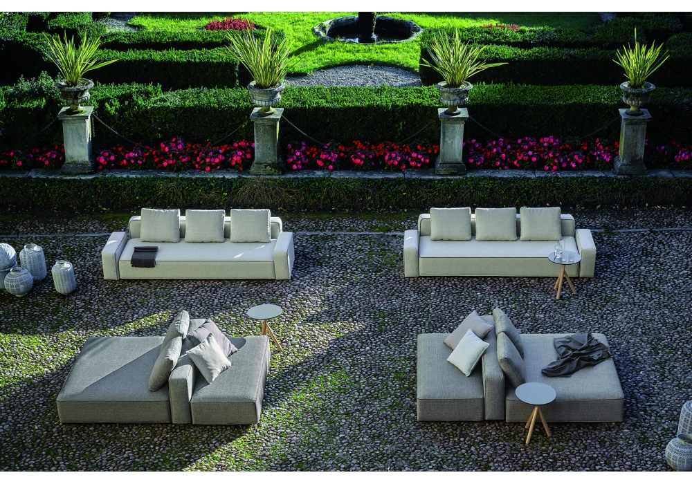 Dandy, von Rodolfo Dordoni für Roda entworfen, ist einer Modulares Sofa mit Aluminiumstruktur mit Elastikgurten und Abziehbare Überzüge, mit unsichtbaren Klettstreifen an der Struktur befestigt. Die Haltbarkeit einer Polsterung gegen Wettereinflüsse steht meistens im Widerspruch zu Bequemlichkeit und Schönheit. RODA löst diese Schwierigkeit dank der Verwendung von 3 unterschiedlichen Polyurethanen, die vereint in einem 3D Netz ein „Luftkissen“ bilden. Diese Struktur besteht aus Aluminium und Edelstahl 304 Kleinteilen und ist mit einem Polyesterlack überzogen, um Haltbarkeit zu gewährleisten. Dank der verstellbaren Füßen, ist es möglich das Sofa auf jede Oberfläche zu legen. Verfügbar in mehreren Ausführungen.