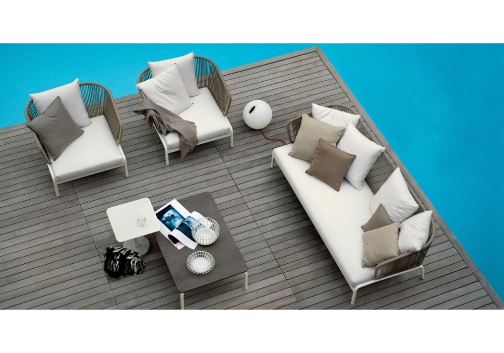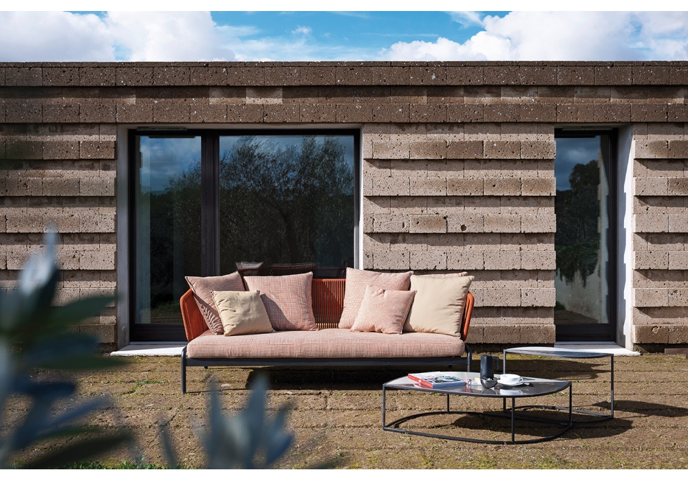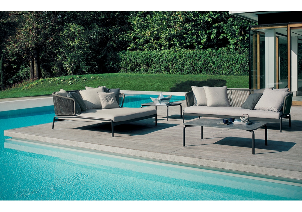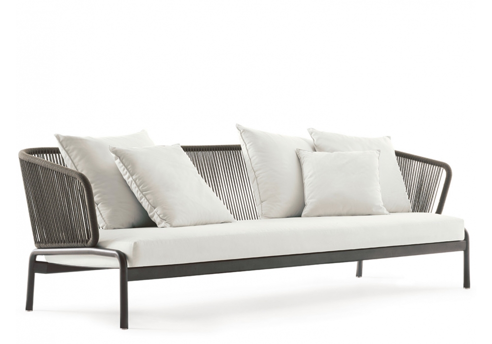 Spool, von Rodolfo Dordoni für Roda entworfen, ist ein Sofa mit pulverbeschichtet Edelstahl-Struktur und elastische Schnüre, die mit Edelstahlhaken an der Struktur eingehakt sind. Spool ist eine Kollektion mit einem explosiven Design, eine perfekte Balance zwischen Kraft und Leichtigkeit, die nicht vernachlässigen Komfort von Sitzgelegenheiten, die eine Fülle von weichen Kissen unterbringen können. Verfügbar in zwei Größen.