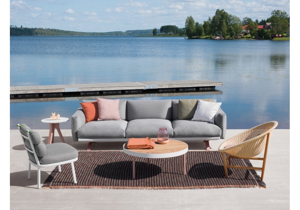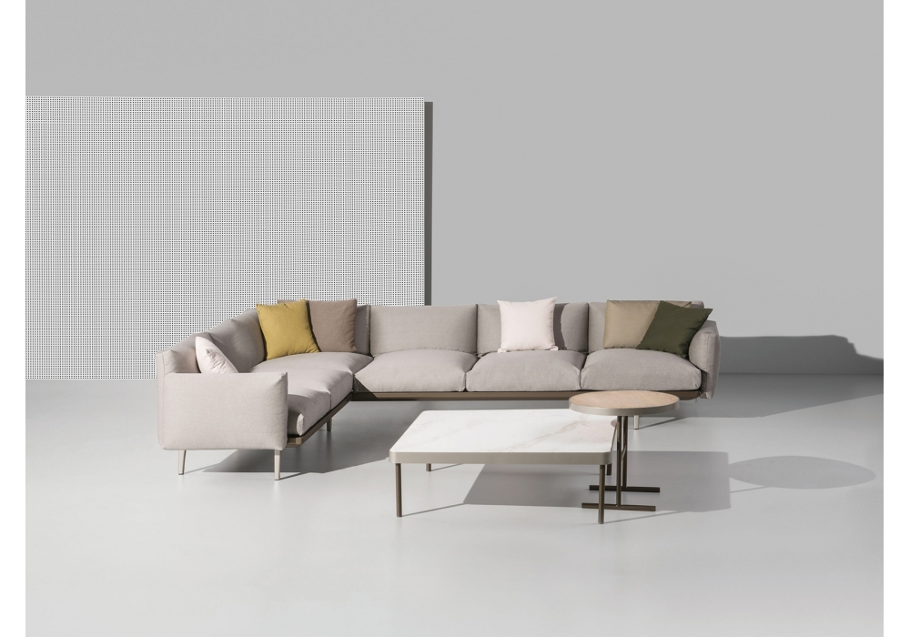 Boma von Rodolfo Dordoni für Kettal entworfen ist ein Sofa mit Basis und Füßen aus lackiertem Aluminium. Die Kissen sind gepolstert und mit Stoff bezogen, der für den Außenbereich geeignet ist. Boma ist in verschiedenen Ausführungen, Fußmodellen und Größen erhältlich.