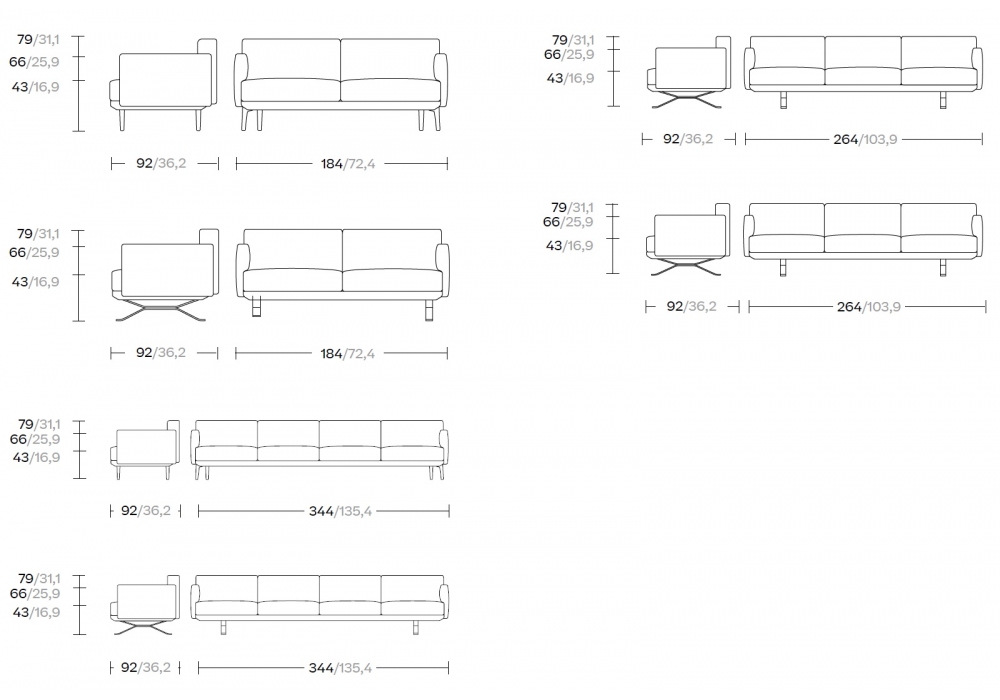 | Abmessungen | 184 x 92 x H 79 cm; 264 x 92 x H 79 cm; 344 x 92 x H 79 cm. |