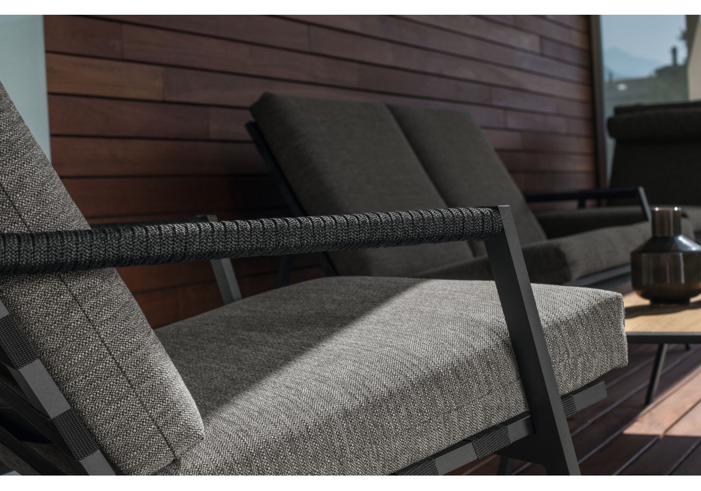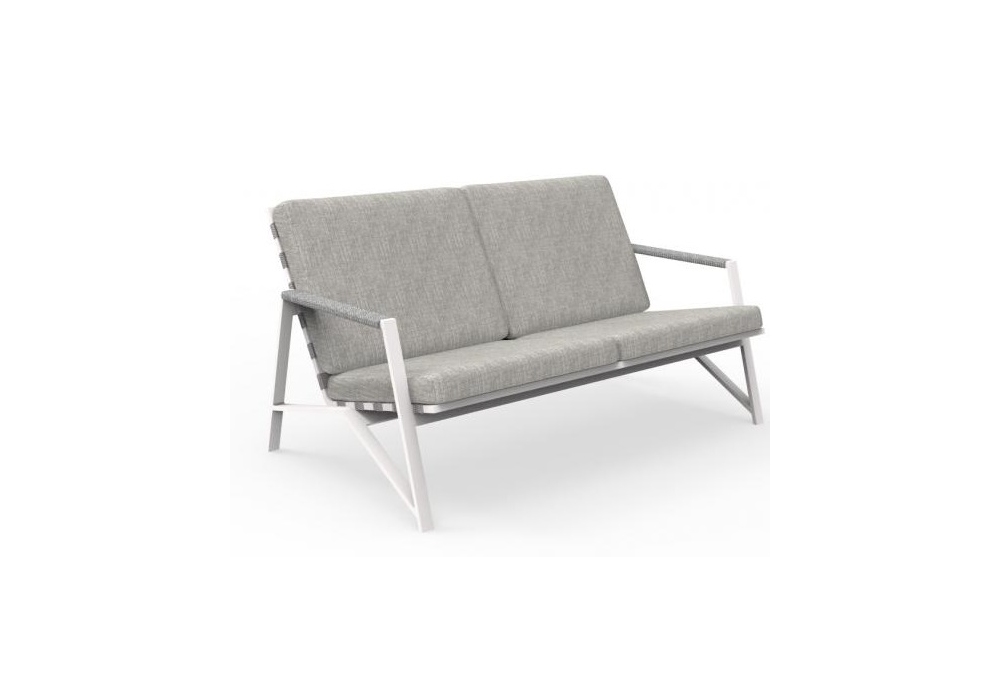 Cottage ist ein Sofa, das von Ramón Esteve für Talenti entworfen wurde. Pulverbeschichtete Aluminiumstruktur in verschiedenen Varianten erhältlich. Sitze und Rückenlehnen werden von synthetischen elastischen Gurten getragen, die auf die Farbe der Armlehnenkordel abgestimmt sind. Herausnehmbare Kissen, leicht zu waschen und witterungsbeständig.