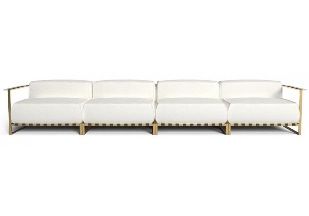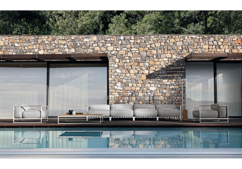 Casilda ist ein modulares Sofa, das von Ràmon Esteve für Talenti entworfen wurde. Durch die Vielfalt der Materialien und Formen der verschiedenen Module ist das Spektrum der Kompositionsmöglichkeiten sehr groß. Casilda besteht aus einem pulverbeschichteten Metallrahmen und findet seine Erkennungsmerkmale in den entlang der Struktur angeordneten Polyesterbändern und in den großen stoffbezogenen Kissen. Dank seines essentiellen Stils fügt es sich in jede Umgebung ein und bereichert es mit seinem zeitgenössischen Charme.