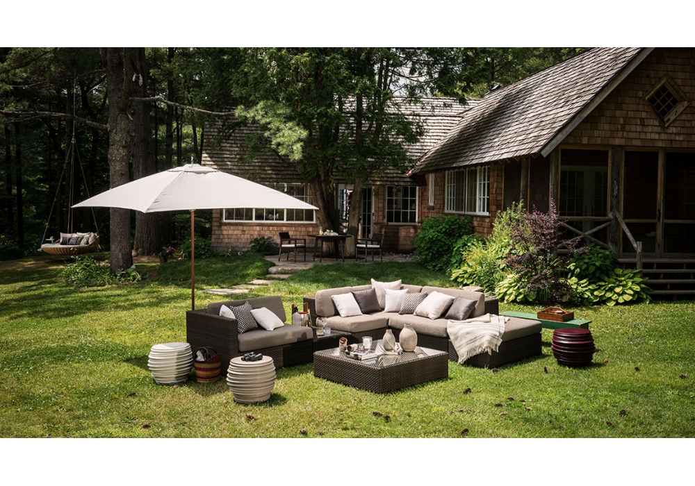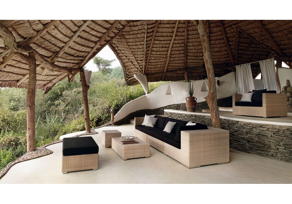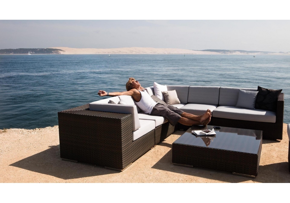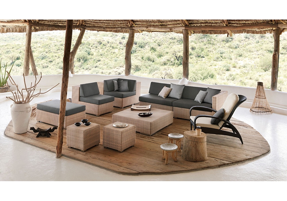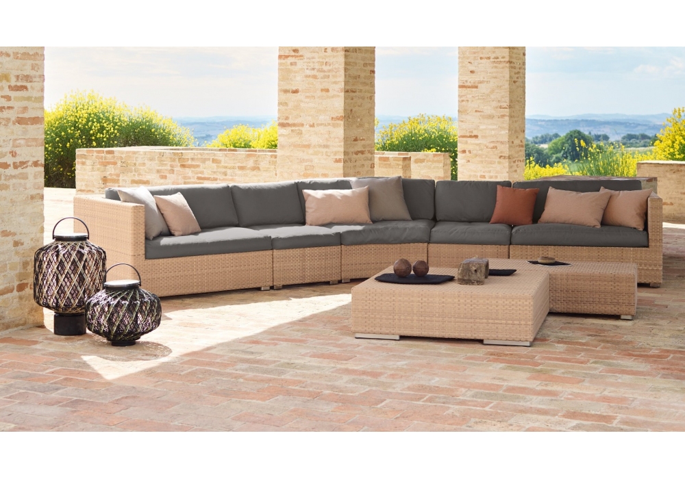 Lounge von Frank Ligthart für Dedon entworfene Lounge ist ein modulares Sofa mit Aluminium- und Faserstruktur, das Teil der Lounge-Kollektion ist. Mit Stoff bezogene Kissen in verschiedenen Ausführungen erhältlich.